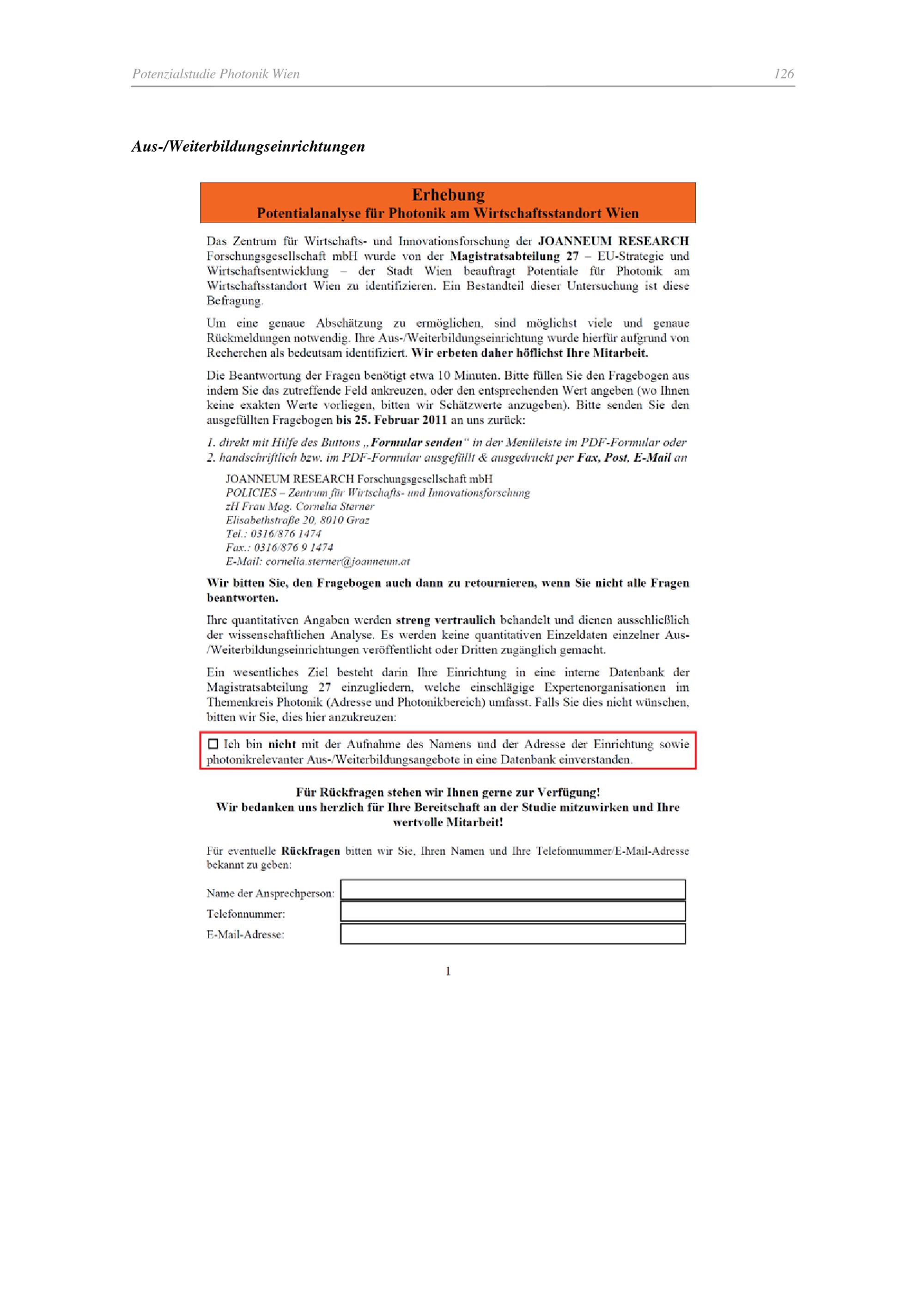Potenzialstudie - Photonik/Optische Technologien am Wirtschaftsstandort Wien / Christian Hartmann, Cornelia Sterner, Georg Jakopic ; im Auftrag von: Magistratsabteilung 23 - Wirtschaft, Arbeit und Statistik