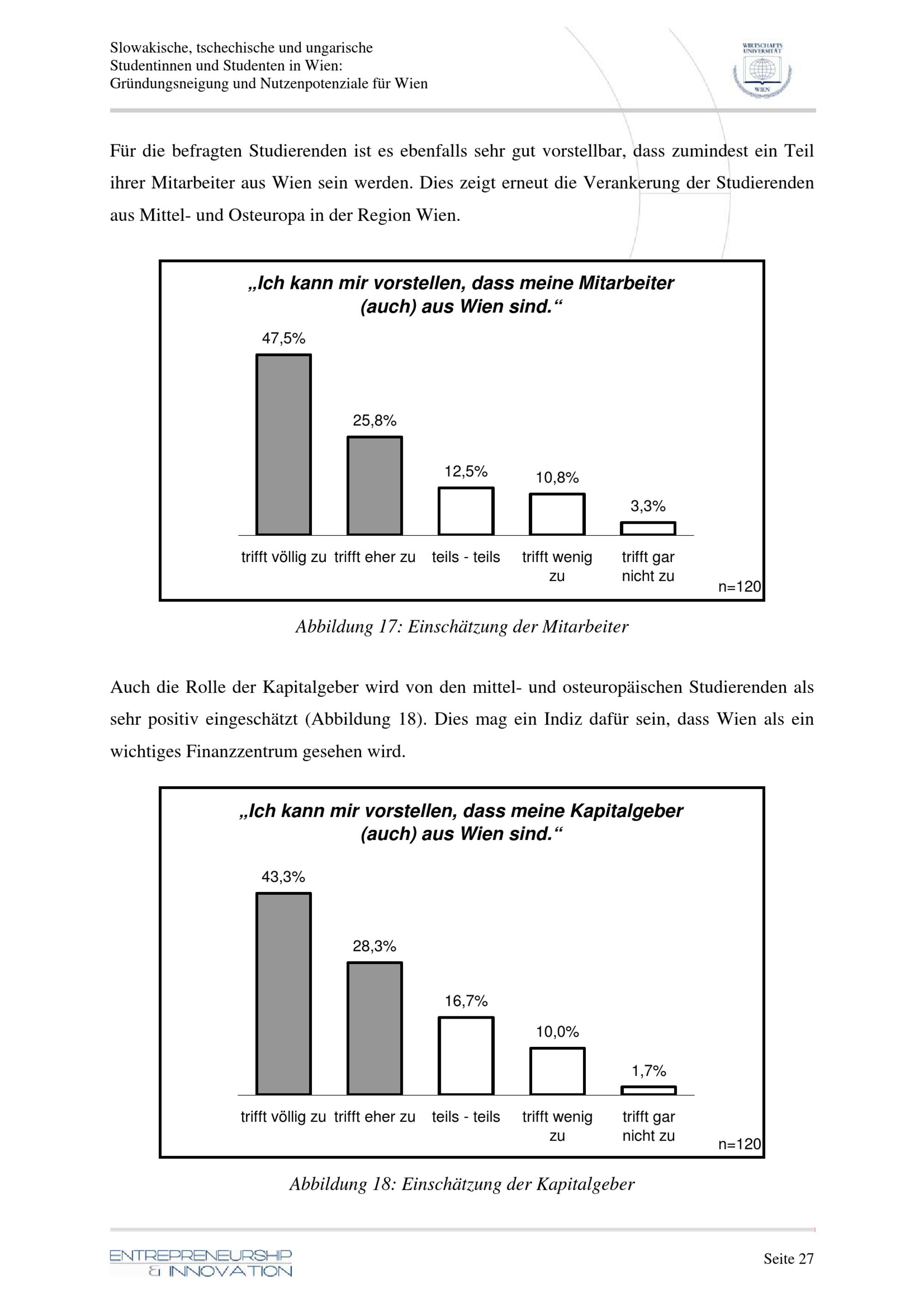 Slowakische, tschechische und ungarische Studentinnen und Studenten in Wien: Gründungsneigung und Nutzenpotenziale für Wien : Projektbericht / für die Magistratsabteilung 27 - EU-Strategie und Wirtschaftsentwicklung Referat für Technologie und Forschung ; Wirtschaftsuniversität Wien Institut für Entrepreneurship und Innovation ; Univ. Prof. Dr. Nikolaus Franke, Mag. Reinhard Prügl, Mag. Christoph Steger