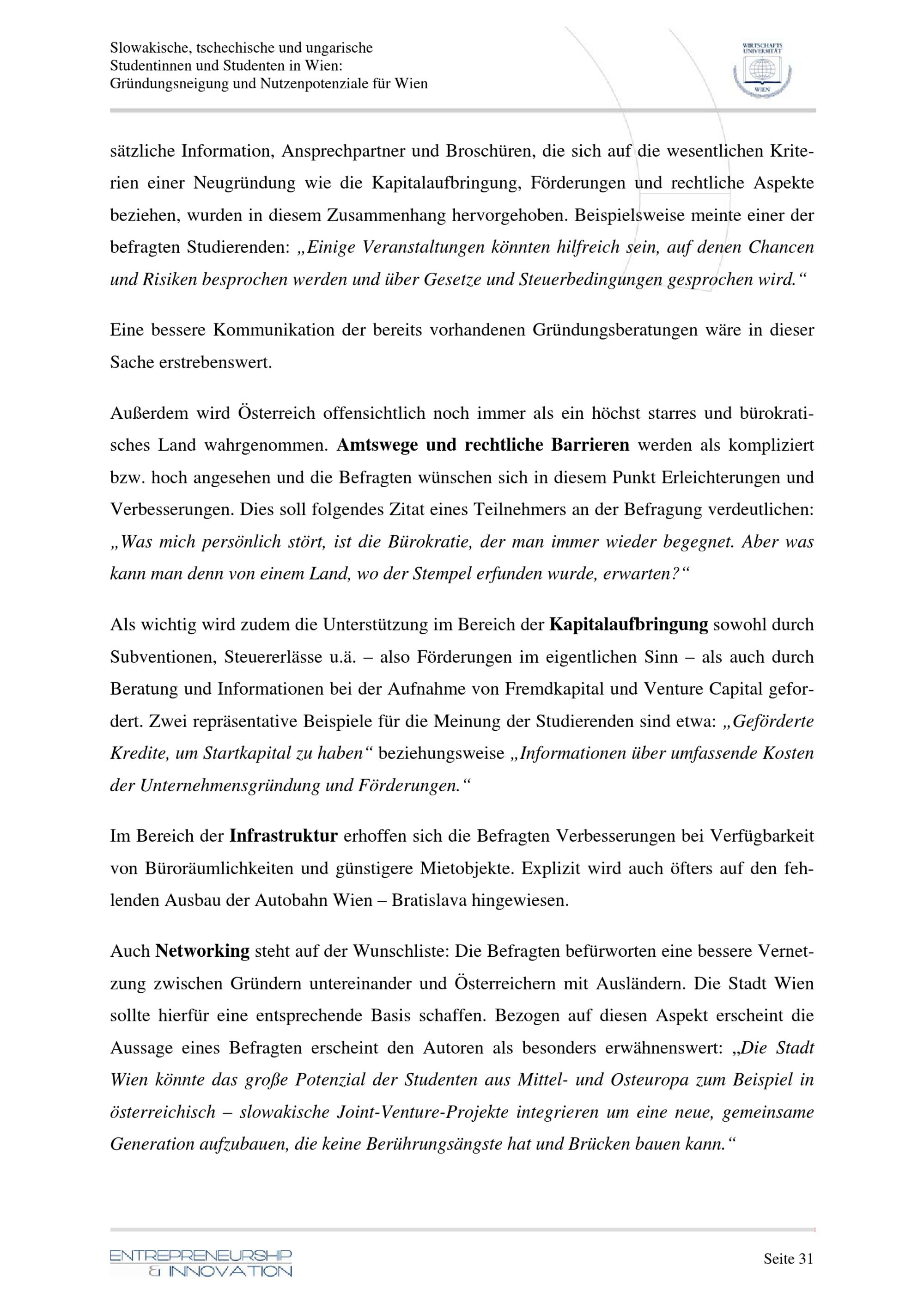 Slowakische, tschechische und ungarische Studentinnen und Studenten in Wien: Gründungsneigung und Nutzenpotenziale für Wien : Projektbericht / für die Magistratsabteilung 27 - EU-Strategie und Wirtschaftsentwicklung Referat für Technologie und Forschung ; Wirtschaftsuniversität Wien Institut für Entrepreneurship und Innovation ; Univ. Prof. Dr. Nikolaus Franke, Mag. Reinhard Prügl, Mag. Christoph Steger
