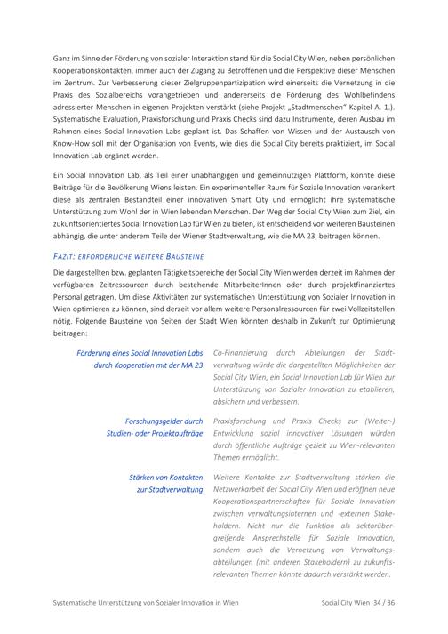Systematische Unterstützung von sozialer Innovation in Wien : Endbericht / beauftragt im Rahmen der Strategie Innovatives Wien 2020 durch die Magistratsabteilung 23 - Wirtschaft, Arbeit und Statistik der Stadt Wien ; durchgeführt von der Social City Wien ; Emil Diaconu, Geschäftsführer Social City Wien ; Johannes Gorbach, organisatorische Umsetzung ; Andreas Bohonnek, wissenschaftliche Begleitung