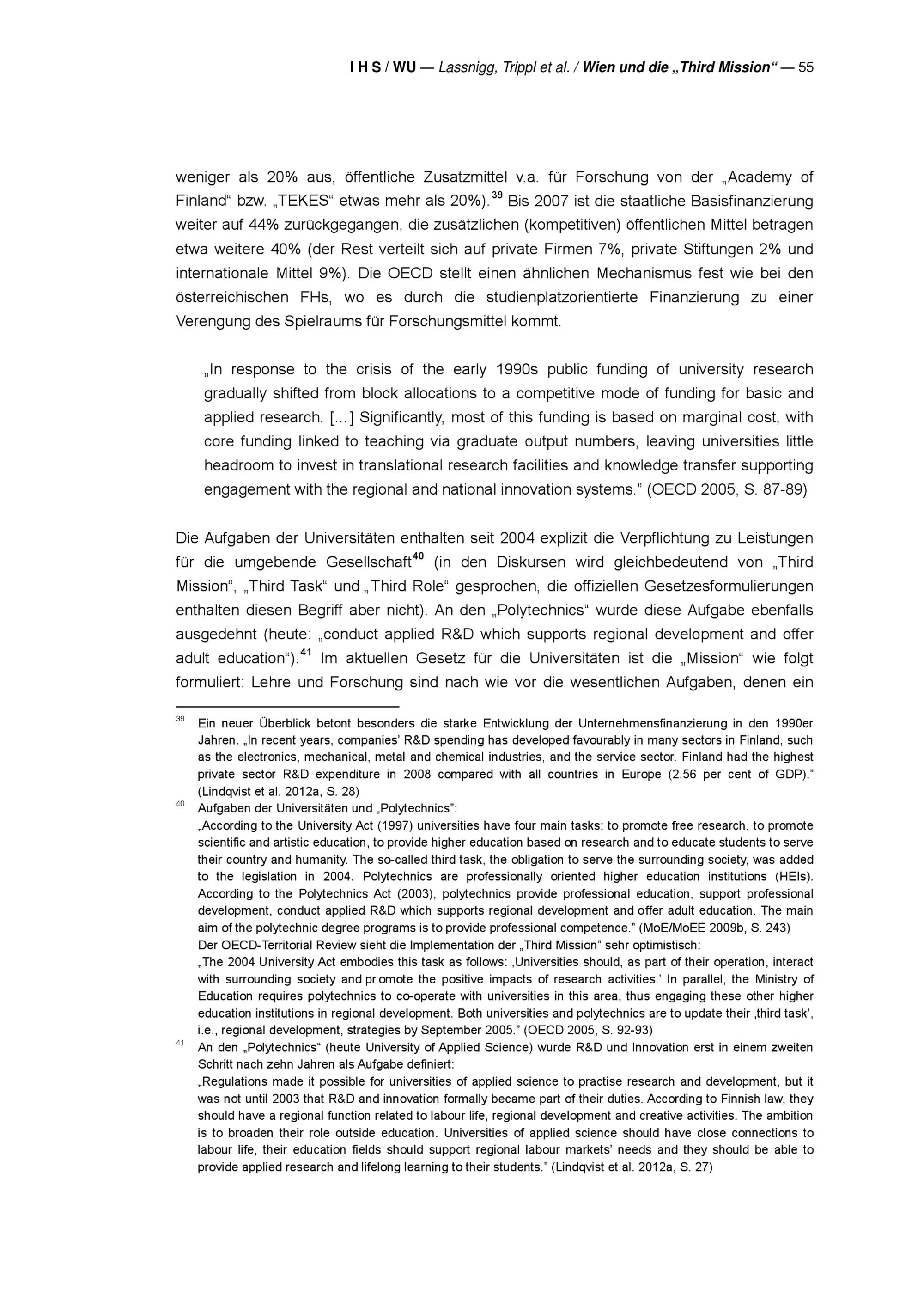 Wien und die "Third Mission" der Hochschulen : Projektbericht / Lorenz Lassnigg, Michaela Trippl, Tanja Sinozic, Alexander Auer ; Studie im Auftrag der MA 23 - Wirtschaft, Arbeit und Statistik, Stadt Wien ; Wirtschaftsuniversität Wien, Institut für Regional- und Umweltwirtschaft, Institut für Höhere Studien (IHS), Wien