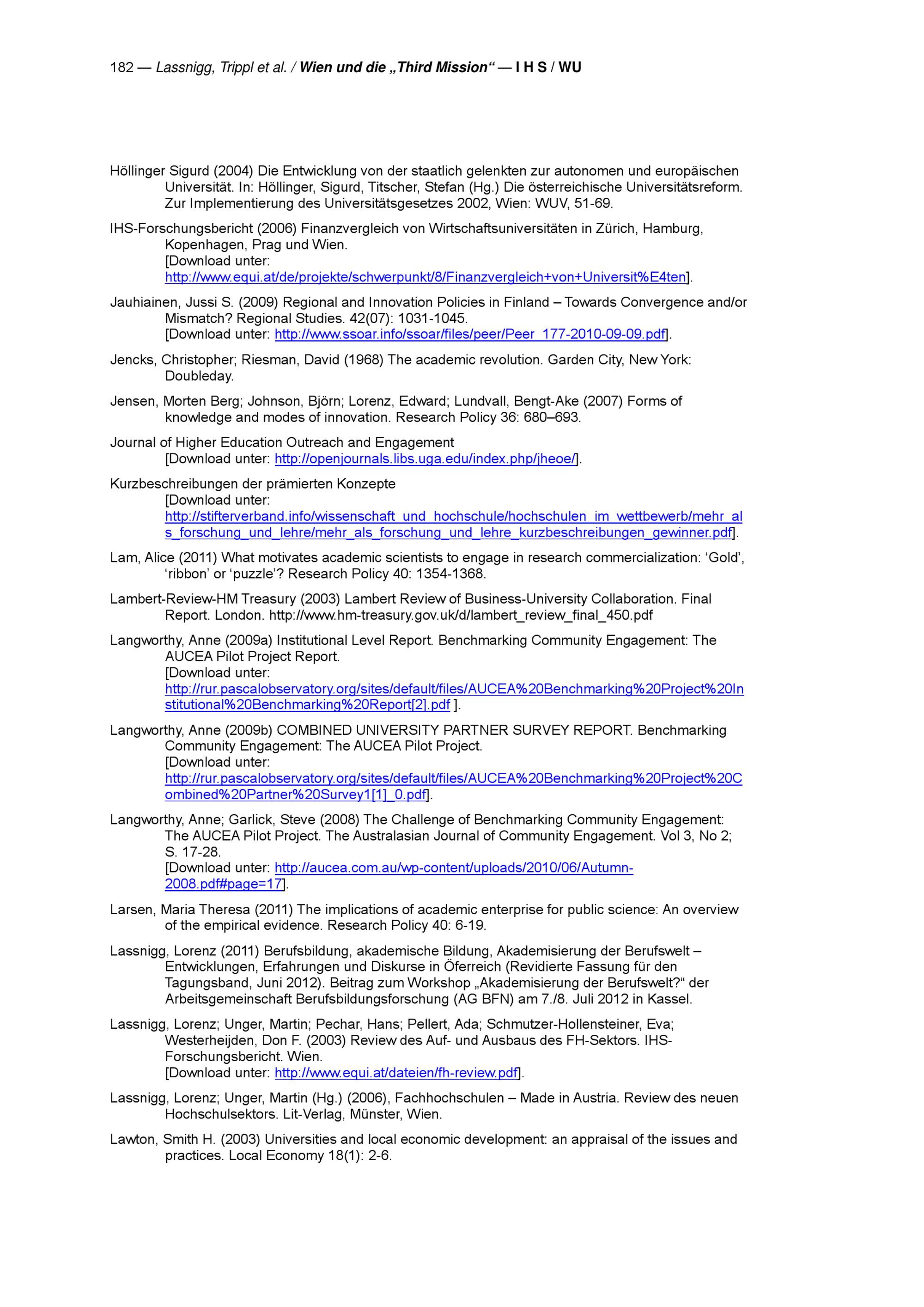 Wien und die "Third Mission" der Hochschulen : Projektbericht / Lorenz Lassnigg, Michaela Trippl, Tanja Sinozic, Alexander Auer ; Studie im Auftrag der MA 23 - Wirtschaft, Arbeit und Statistik, Stadt Wien ; Wirtschaftsuniversität Wien, Institut für Regional- und Umweltwirtschaft, Institut für Höhere Studien (IHS), Wien