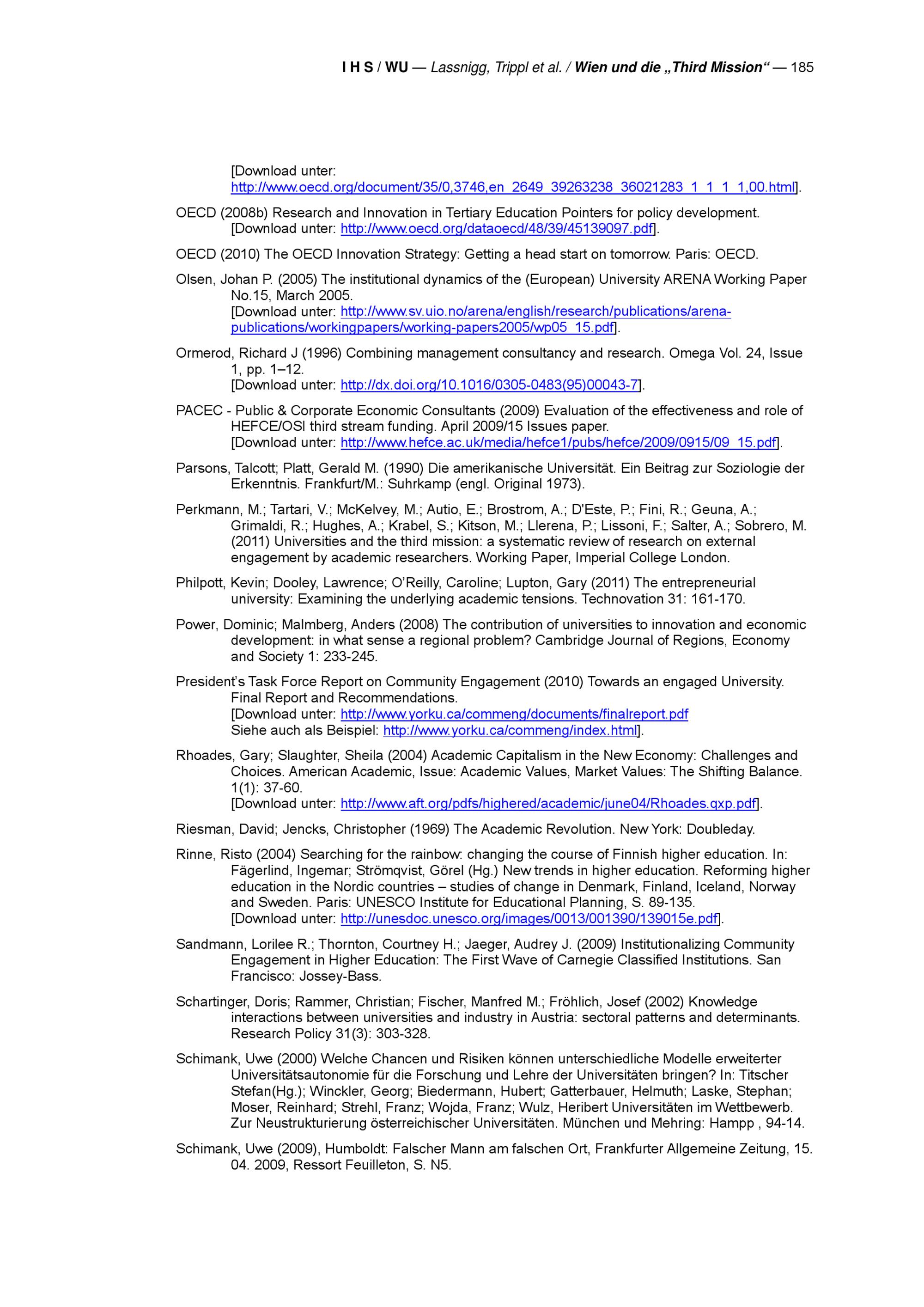 Wien und die "Third Mission" der Hochschulen : Projektbericht / Lorenz Lassnigg, Michaela Trippl, Tanja Sinozic, Alexander Auer ; Studie im Auftrag der MA 23 - Wirtschaft, Arbeit und Statistik, Stadt Wien ; Wirtschaftsuniversität Wien, Institut für Regional- und Umweltwirtschaft, Institut für Höhere Studien (IHS), Wien