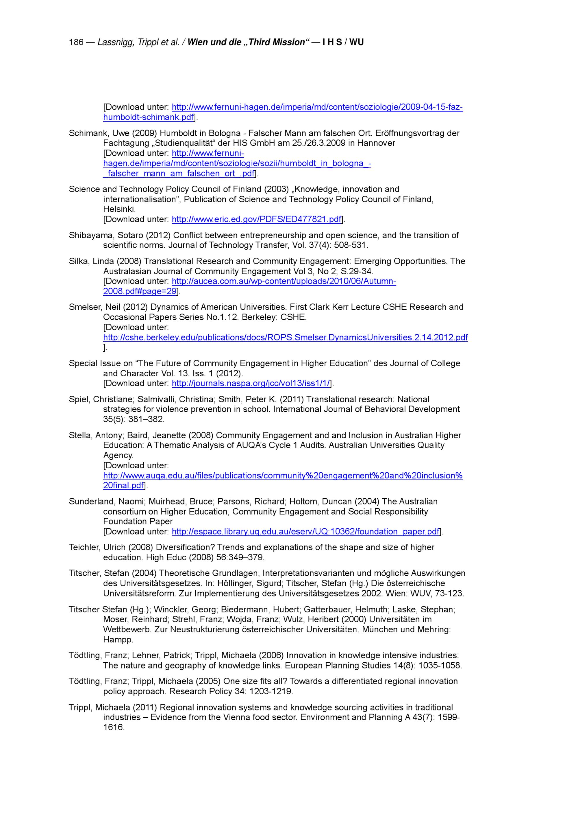 Wien und die "Third Mission" der Hochschulen : Projektbericht / Lorenz Lassnigg, Michaela Trippl, Tanja Sinozic, Alexander Auer ; Studie im Auftrag der MA 23 - Wirtschaft, Arbeit und Statistik, Stadt Wien ; Wirtschaftsuniversität Wien, Institut für Regional- und Umweltwirtschaft, Institut für Höhere Studien (IHS), Wien