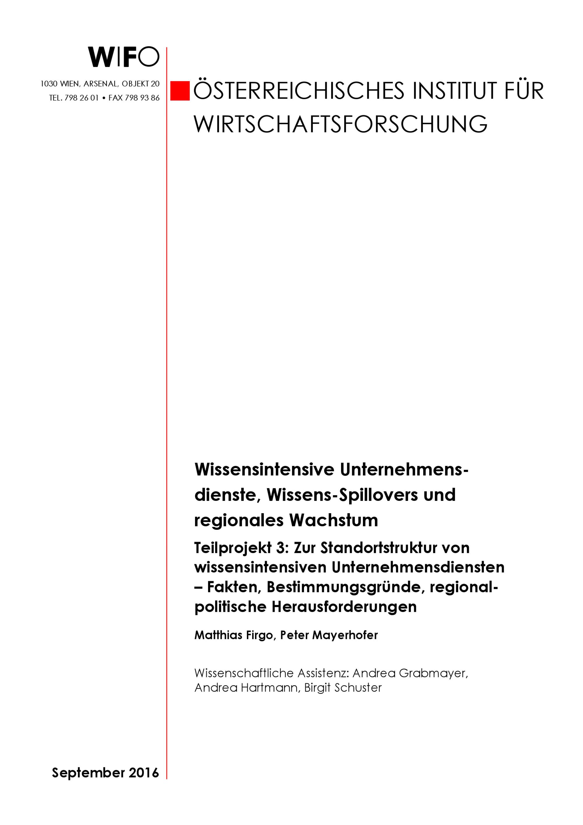 Zur Standortstruktur von wissensintensiven Unternehmensdiensten : Fakten, Bestimmungsgründe, regional-politische Herausforderungen / Matthias Firgo, Peter Mayerhofer ; Wissenschaftliche Assistenz: Andrea Grabmayer, Andrea Hartmann, Birgit Schuster
