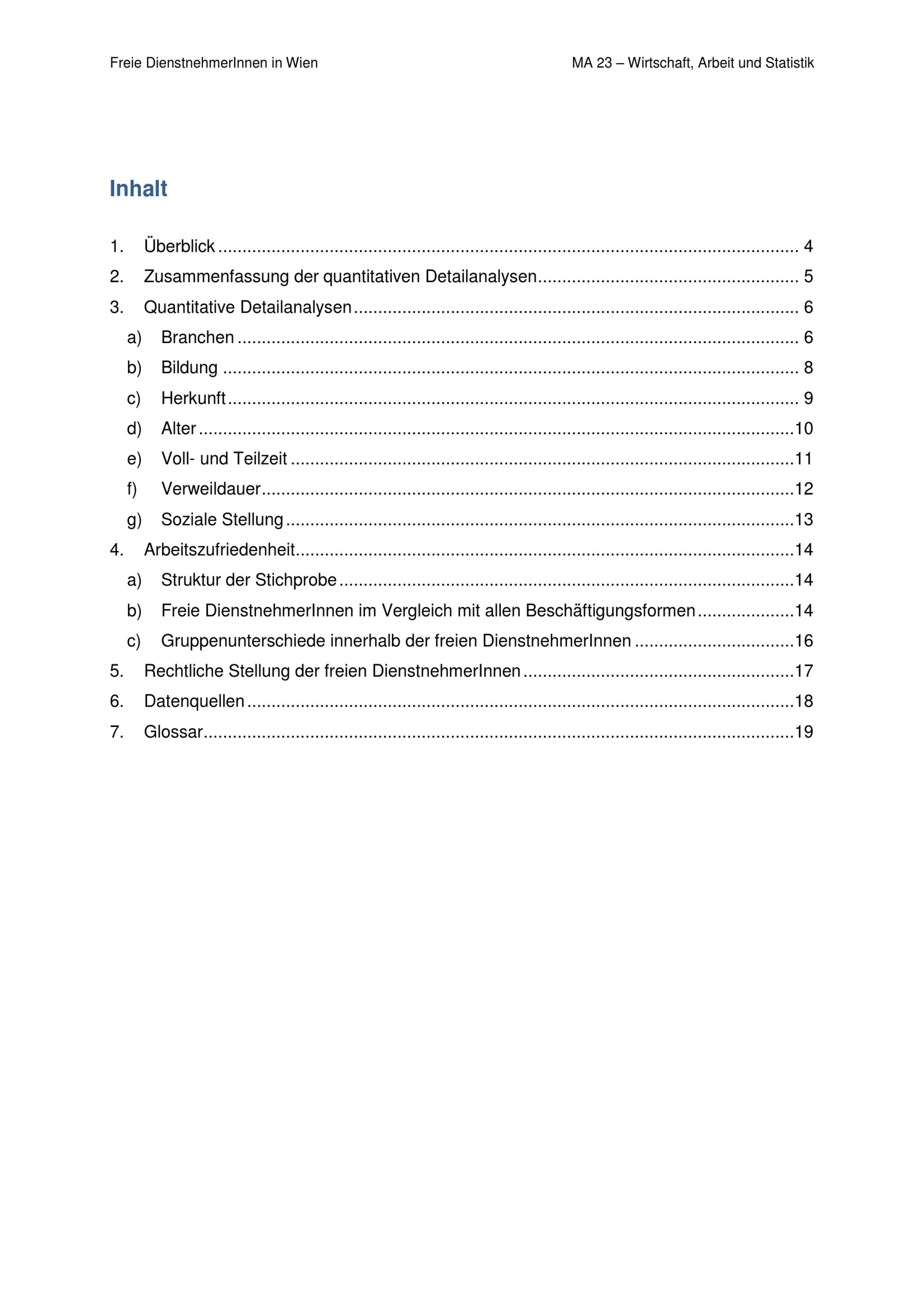 Freie DienstnehmerInnen und Dienstnehmer in Wien / eine Analyse der MA 23 - Wirtschaft, Arbeit und Statistik