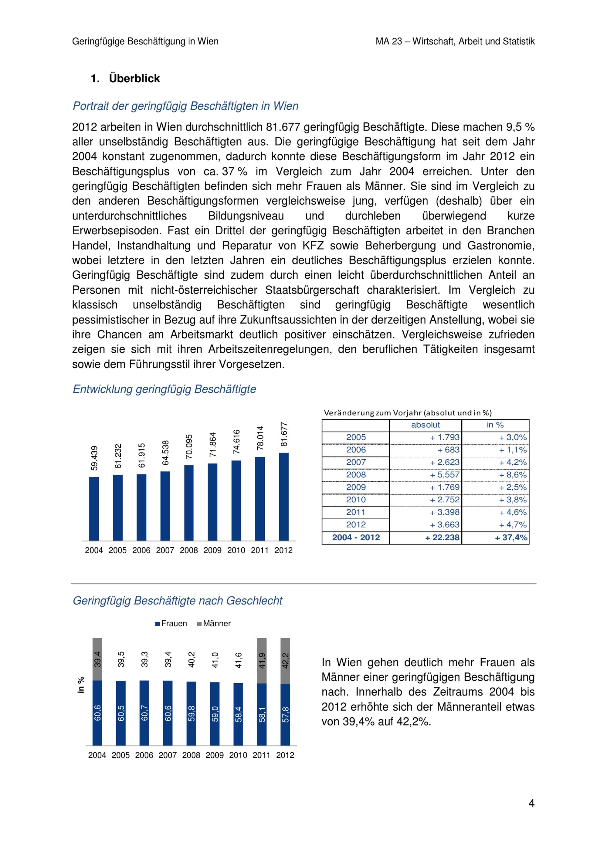 Geringfügige Beschäftigung in Wien / eine Analyse der MA 23 - Wirtschaft, Arbeit und Statistik