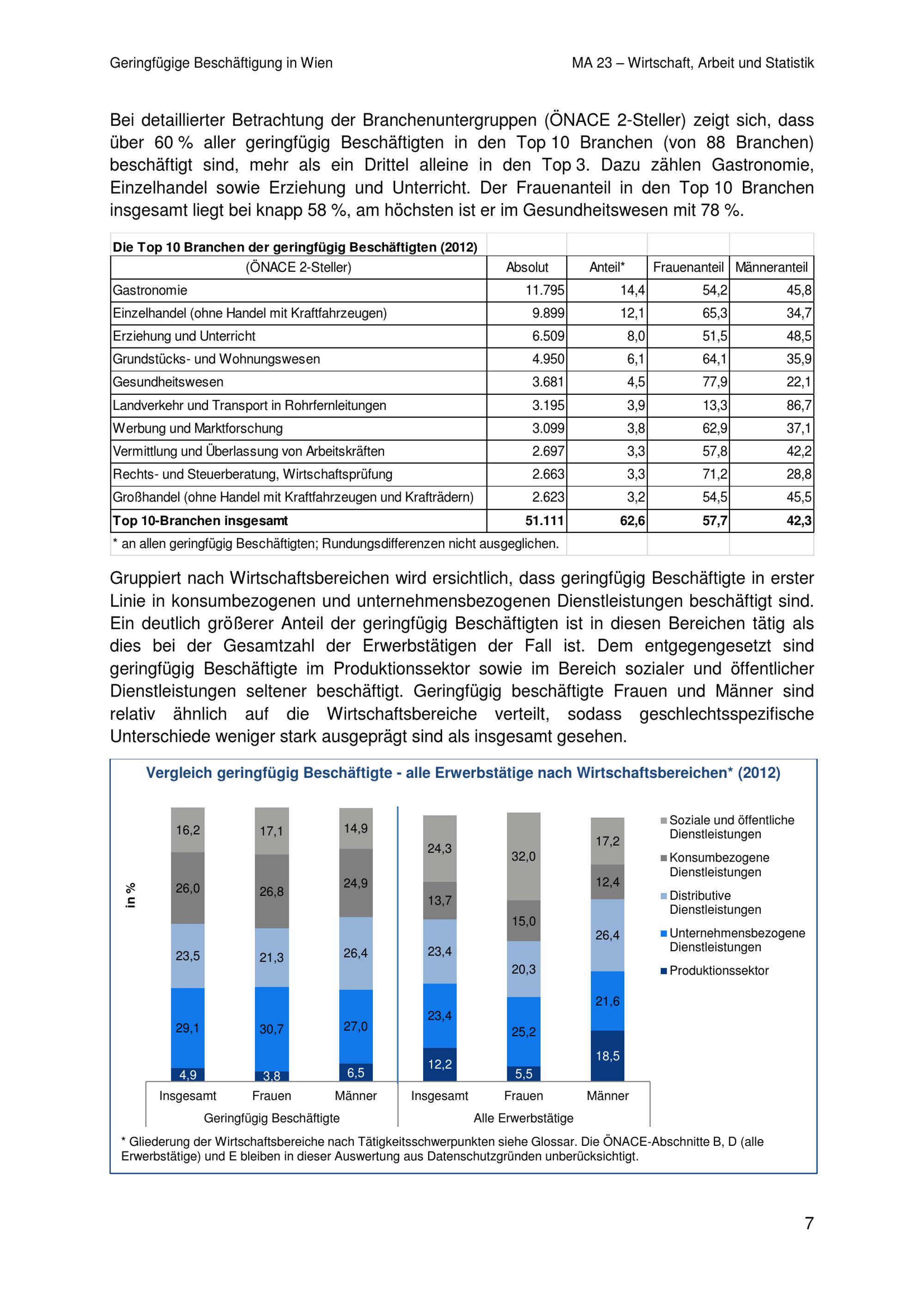 Geringfügige Beschäftigung in Wien / eine Analyse der MA 23 - Wirtschaft, Arbeit und Statistik