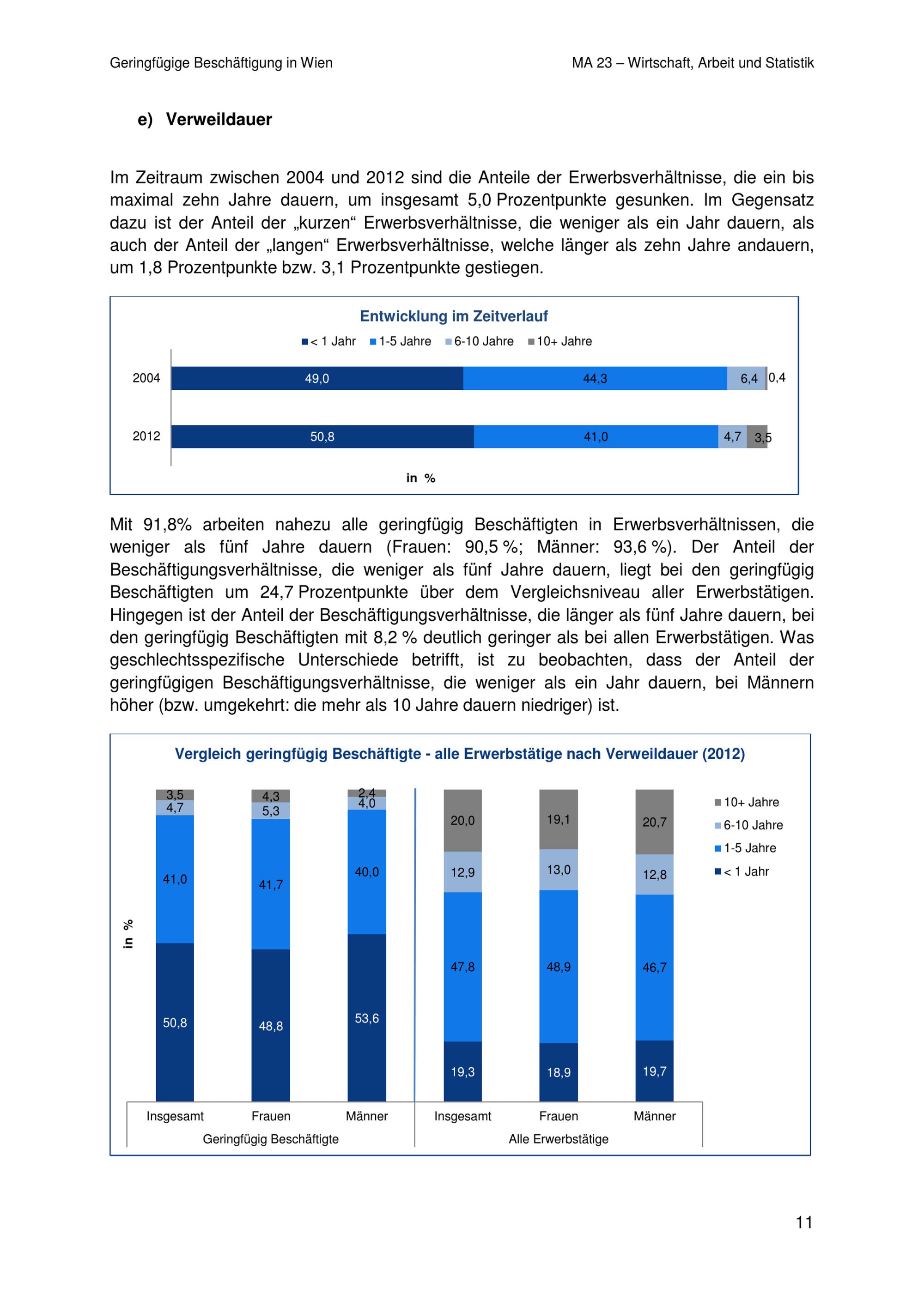 Geringfügige Beschäftigung in Wien / eine Analyse der MA 23 - Wirtschaft, Arbeit und Statistik