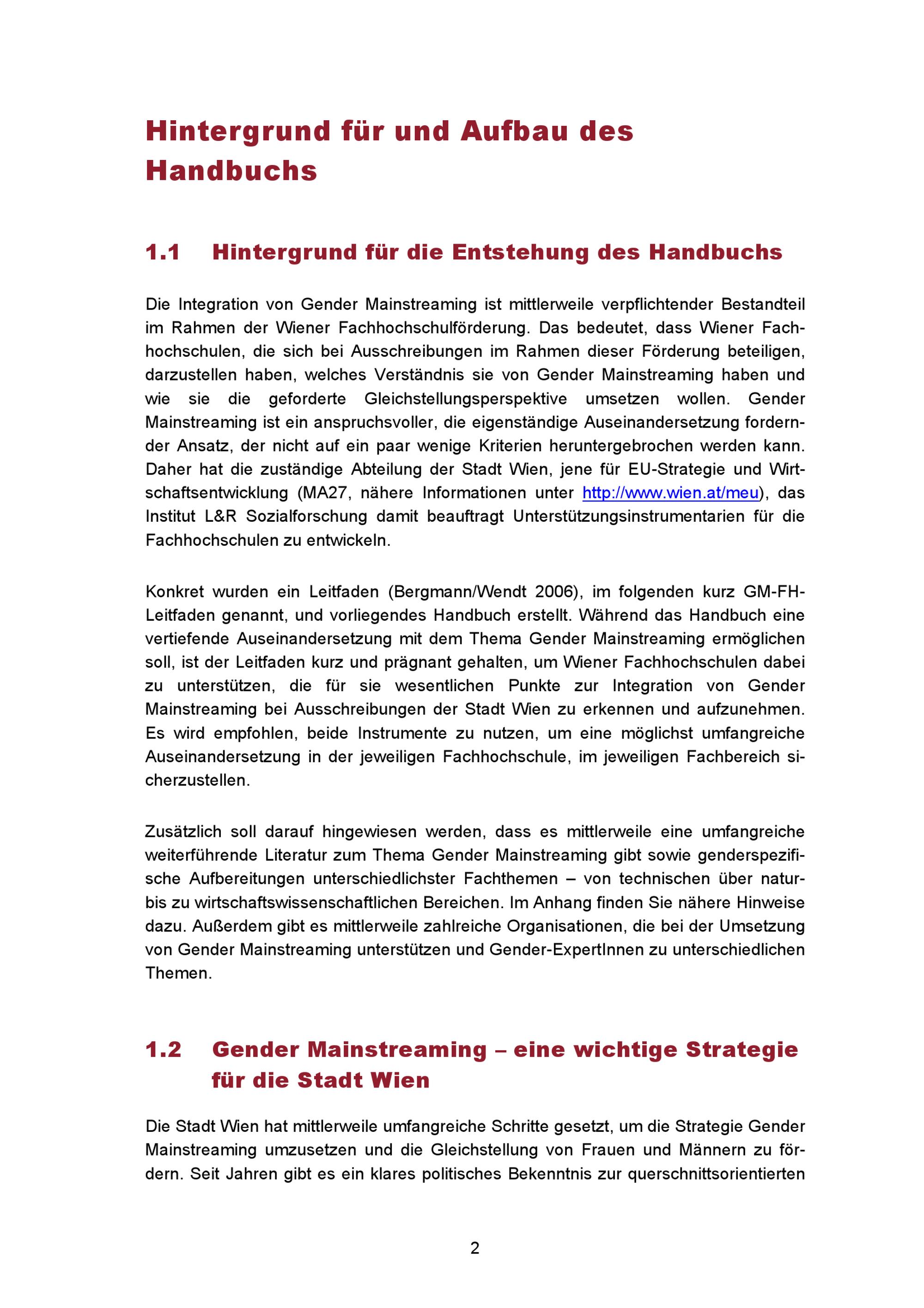 Handbuch zur Integration von Gender Mainstreaming bei Projektanträgen der Fachhochschulen / Bergmann, Nadja/Wendt, Tosca ; L&R Sozialforschung im Auftrag der MA 27, Stadt Wien