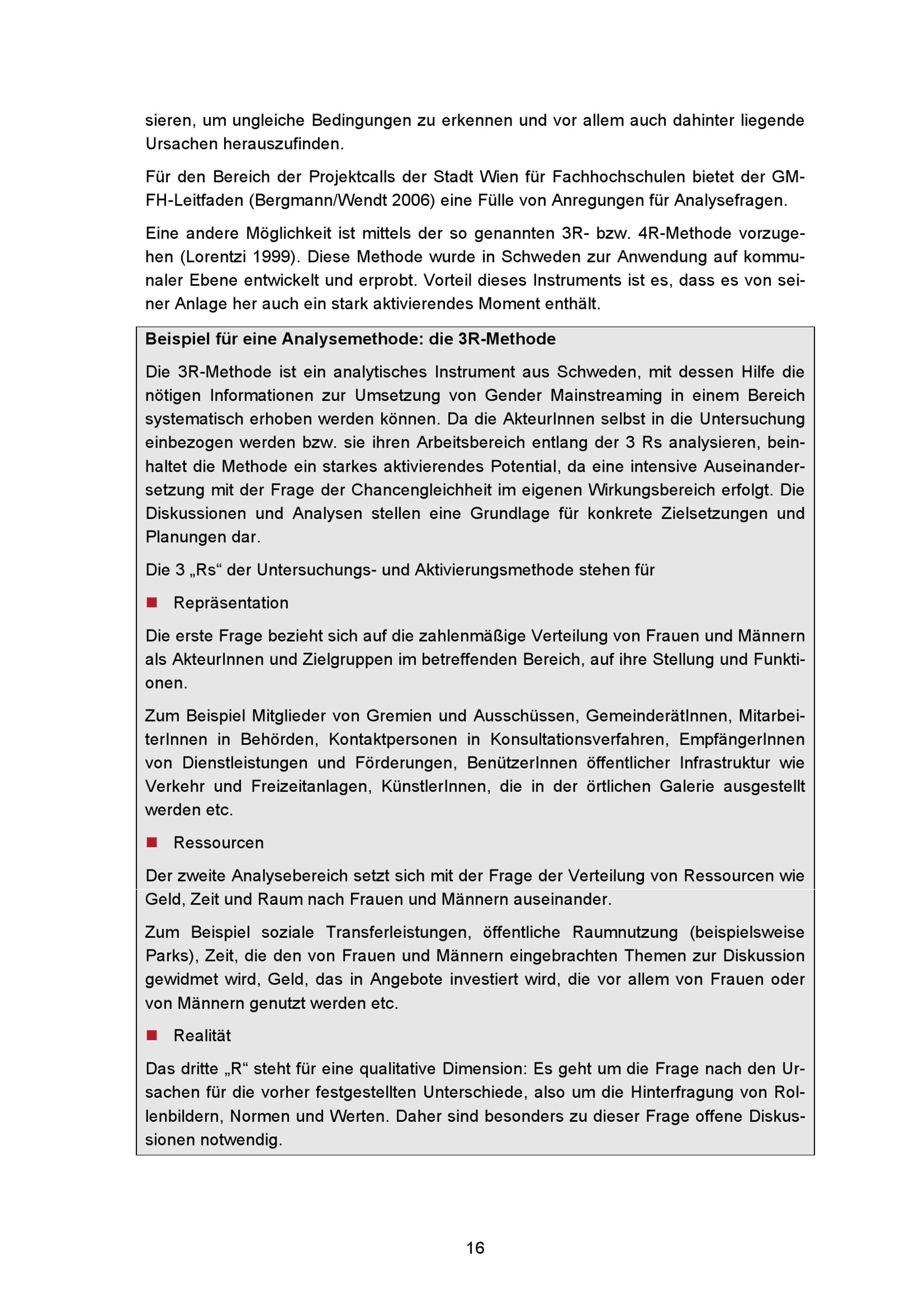 Handbuch zur Integration von Gender Mainstreaming bei Projektanträgen der Fachhochschulen / Bergmann, Nadja/Wendt, Tosca ; L&R Sozialforschung im Auftrag der MA 27, Stadt Wien