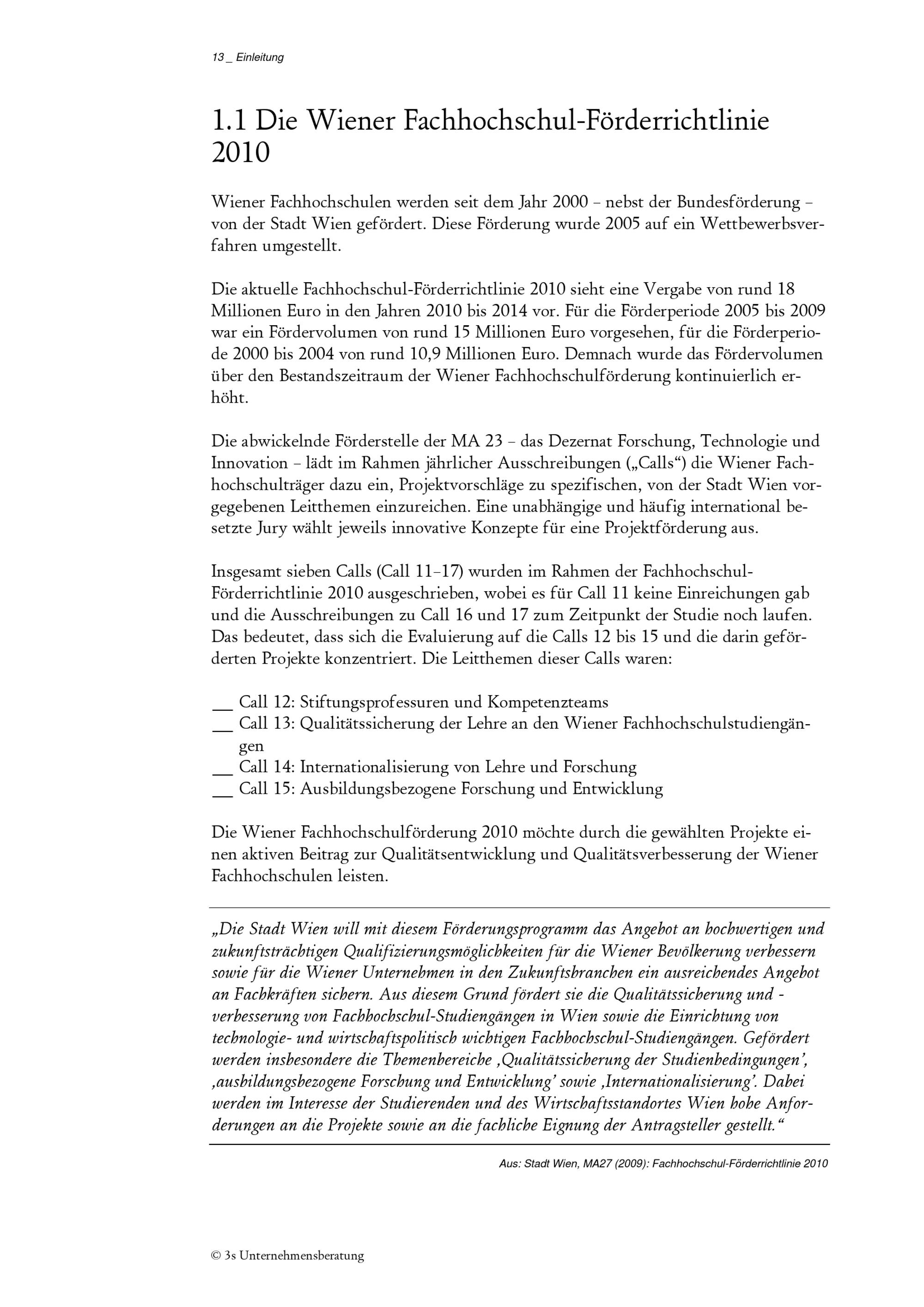 Evaluierung der Wiener Fachhochschul-Förderrichtlinie 2010 : Endbericht zum Projekt / AutorInnen: Viktor Fleischer, Eva Horak, Stefan Humpl, Sigrid Nindl, Sabine Schwenk