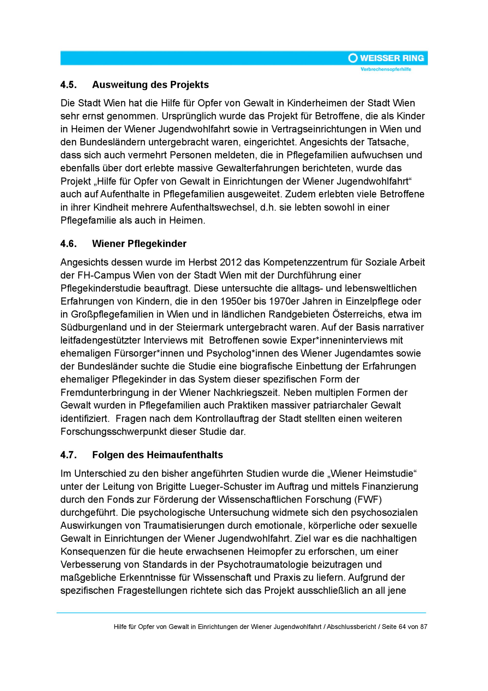 Hilfe für Opfer von Gewalt in Einrichtungen der Wiener Jugendwohlfahrt : Projektzeitraum 2010-2019 : Abschlussbericht / Weisser Ring Verbrechensopferhilfe ; mit Beiträgen von Marianne Gammer, Udo Jesionek, Ralf Gößler [und 8 weiteren]