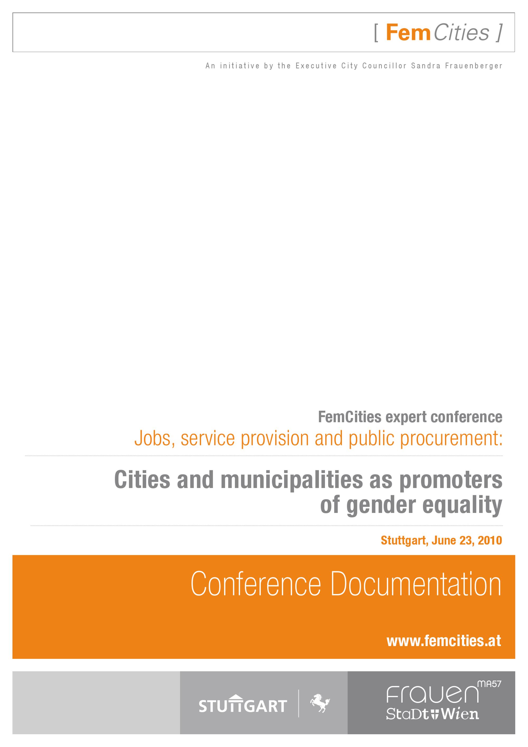 Cities and municipalities as promoters of gender equality : FemCities Expert Conference - Jobs, Service Provision and Public Procurement : Stuttgart, June 23, 2010 : conference documentation / MA 57 – Women’s Department for the City of Vienna