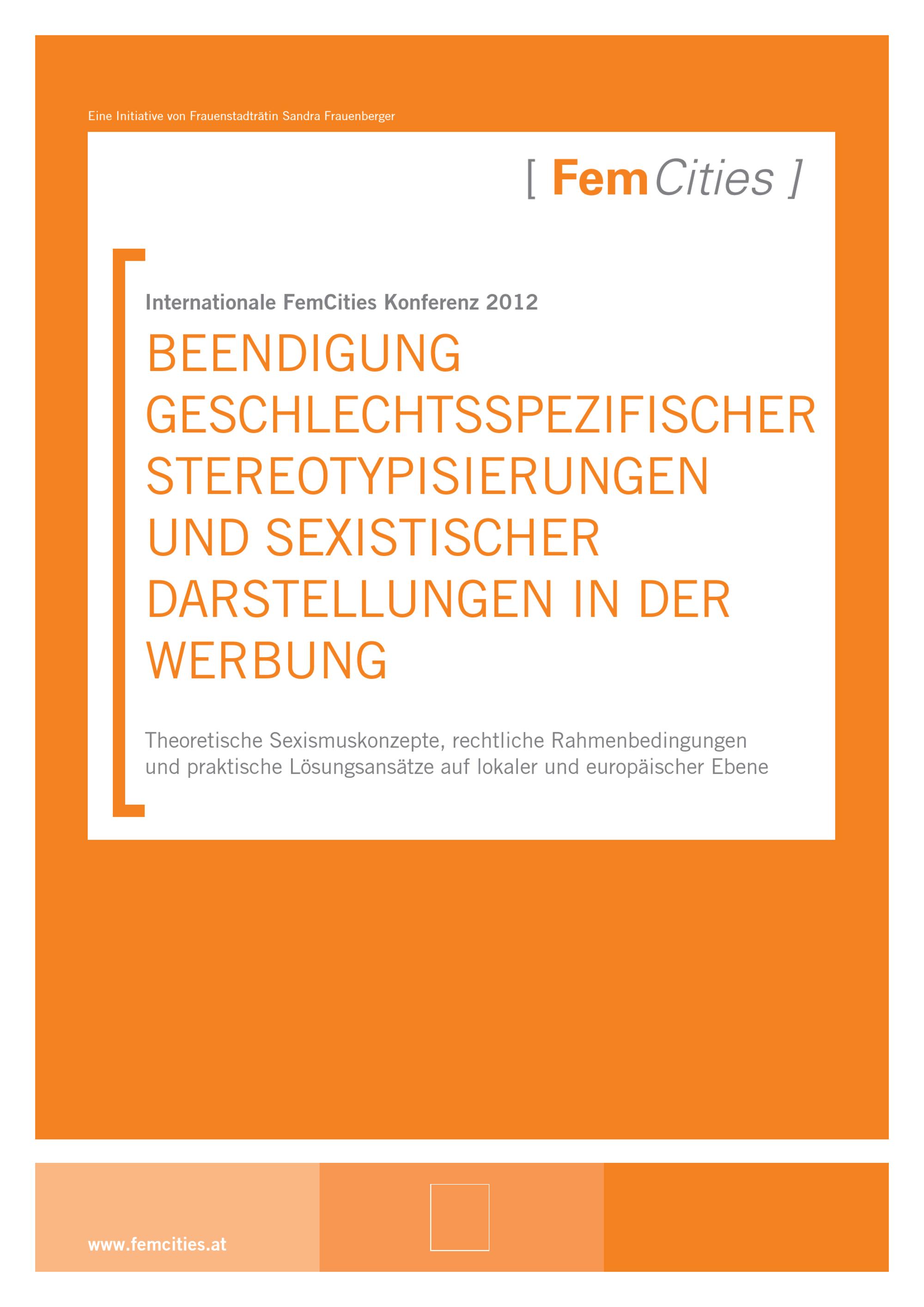 Beendigung geschlechtsspezifischer Stereotypisierungen und sexistischer Darstellungen in der Werbung : Internationale FemCities Konferenz 2012 ; theoretische Sexismuskonzepte, rechtliche Rahmenbedingungen und praktische Lösungsansätze auf lokaler und europäischer Ebene / Stadt Wien, MA 57 – Frauenabteilung der Stadt Wien