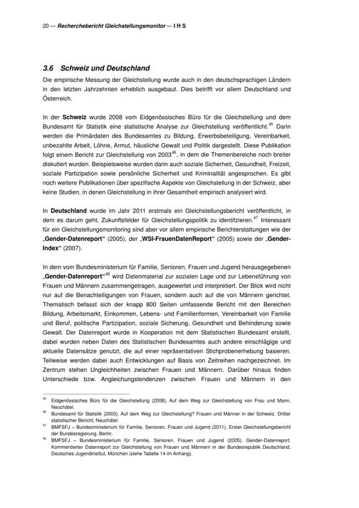 Messung von Gleichstellung : Stand der Diskussion zu geschlechtersegregierten Daten, Gleichstellungsindikatoren und Gleichstellungsmonitoring : Bericht zur Literaturrecherche / Andrea Leitner, Angela Wroblewski ; unter Mitarbeit von Isabella Reisenzaun ; Studie im Auftrag der Frauenabteilung Wien