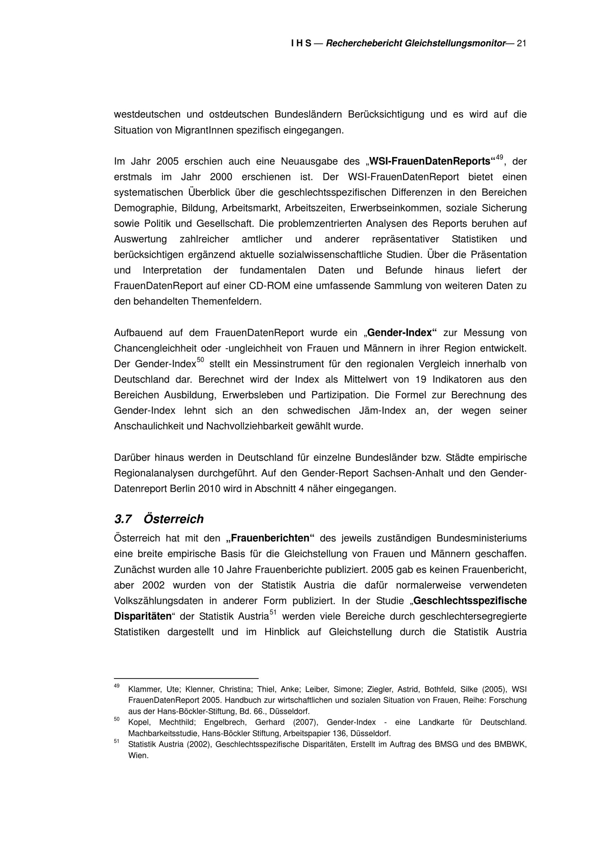Messung von Gleichstellung : Stand der Diskussion zu geschlechtersegregierten Daten, Gleichstellungsindikatoren und Gleichstellungsmonitoring : Bericht zur Literaturrecherche / Andrea Leitner, Angela Wroblewski ; unter Mitarbeit von Isabella Reisenzaun ; Studie im Auftrag der Frauenabteilung Wien