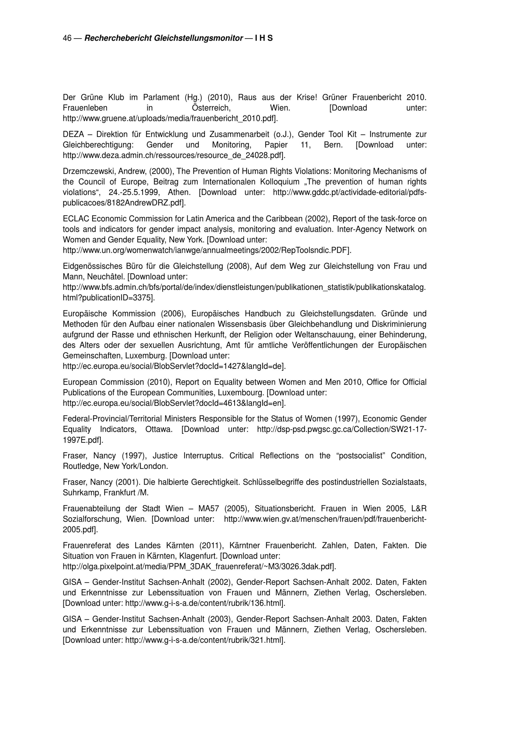 Messung von Gleichstellung : Stand der Diskussion zu geschlechtersegregierten Daten, Gleichstellungsindikatoren und Gleichstellungsmonitoring : Bericht zur Literaturrecherche / Andrea Leitner, Angela Wroblewski ; unter Mitarbeit von Isabella Reisenzaun ; Studie im Auftrag der Frauenabteilung Wien