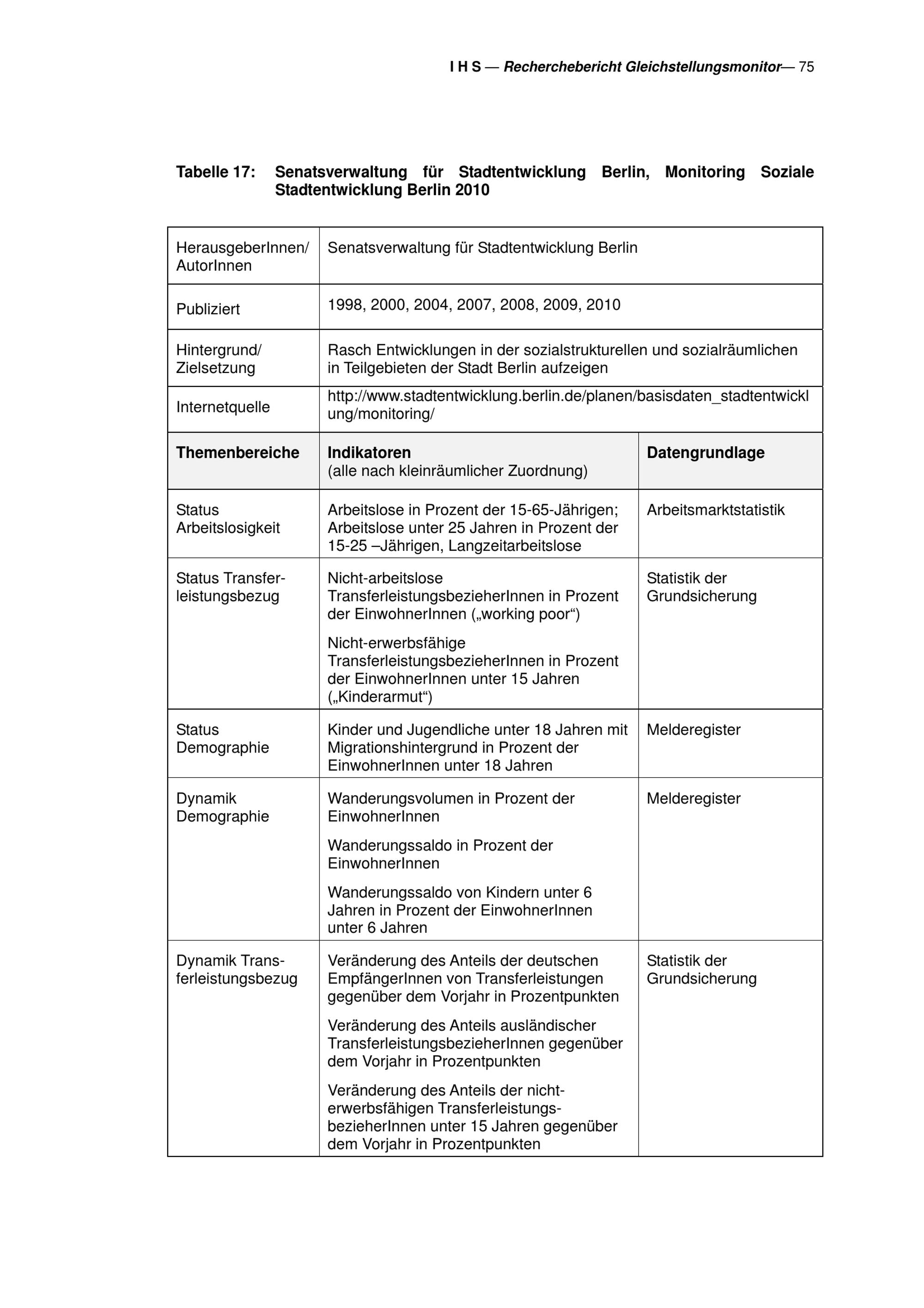 Messung von Gleichstellung : Stand der Diskussion zu geschlechtersegregierten Daten, Gleichstellungsindikatoren und Gleichstellungsmonitoring : Bericht zur Literaturrecherche / Andrea Leitner, Angela Wroblewski ; unter Mitarbeit von Isabella Reisenzaun ; Studie im Auftrag der Frauenabteilung Wien