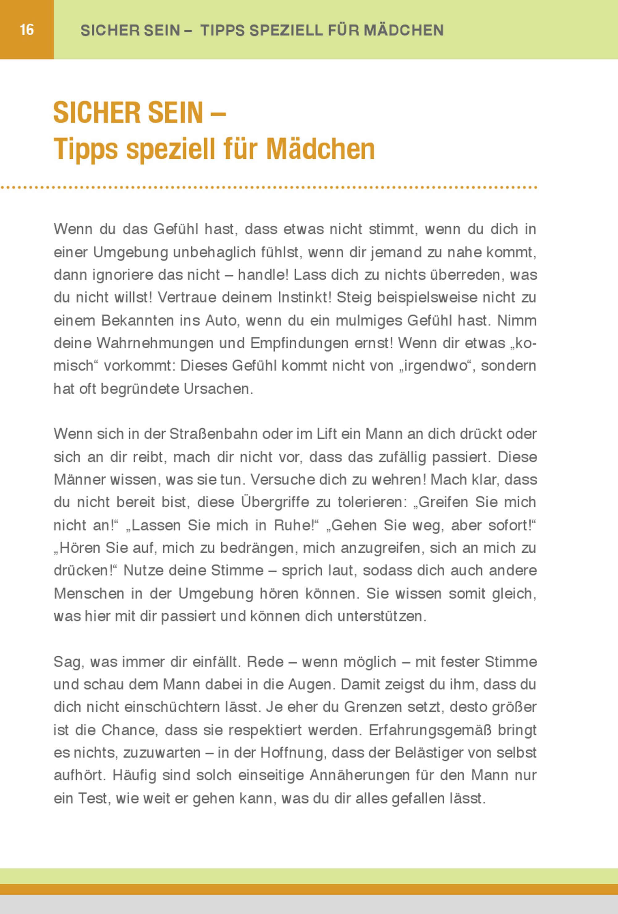 Sicherheitstipps für Frauen und Mädchen : eine Initiative von Frauenstadträtin Sandra Frauenberger / für den Inhalt verantwortlich: MA 57 – Frauenabteilung der Stadt Wien