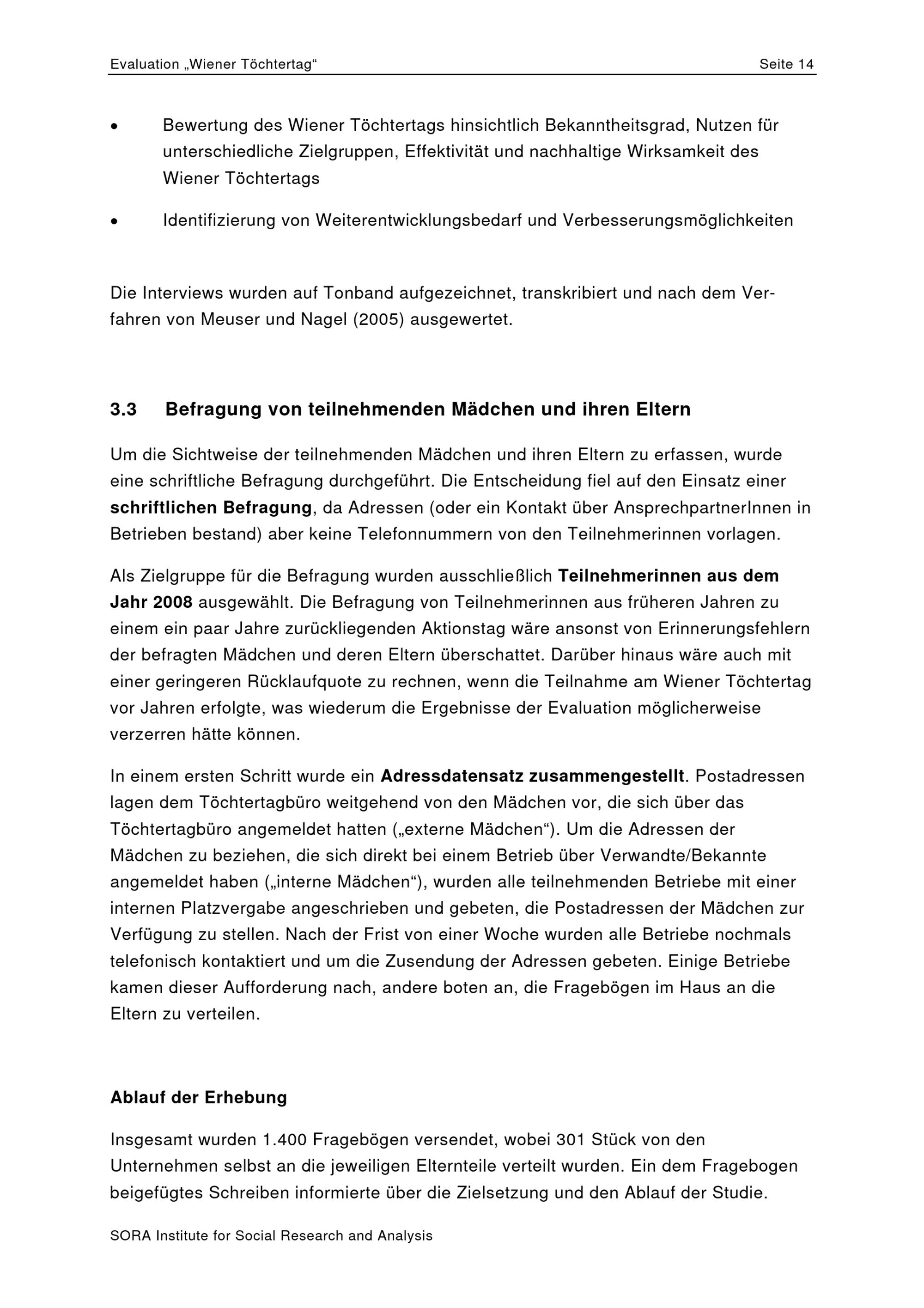 Evaluation des Wiener Töchtertags 2002 bis 2008 / Auftraggeberin: Frauenabteilung der Stadt Wien (MA 57) ; Autorinnen: Verena Paul, Daniela Wittinger, Johanna Blum [und 3 weitere]