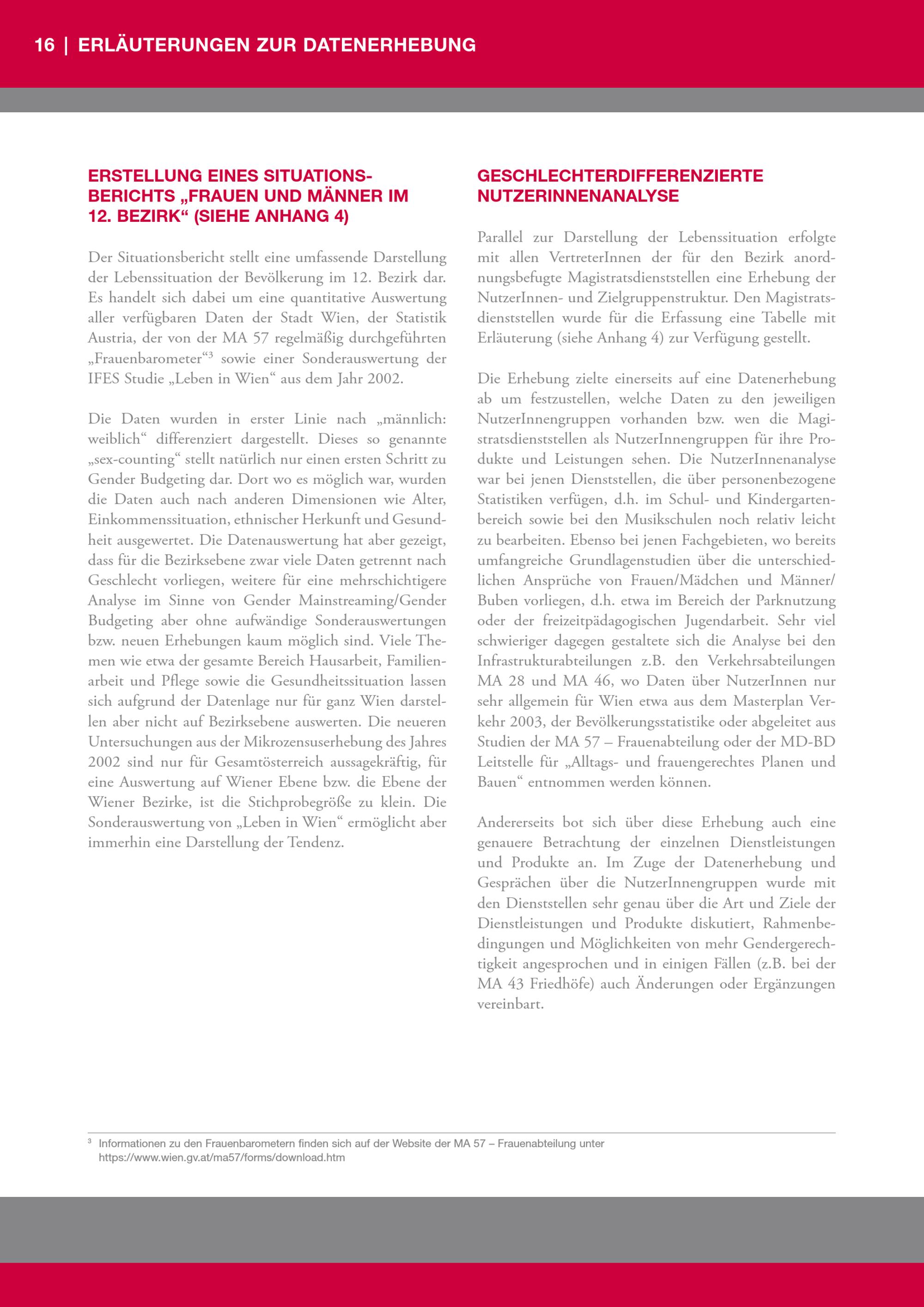Gender Budgeting : Pilotbezirk / Herausgeberin: Frauenabteilung der Stadt Wien MA 57 - Frauenförderung und Koordinierung von Frauenangelegenheiten ; VerfasserInnen: Ursula Bauer, Katharina Mader