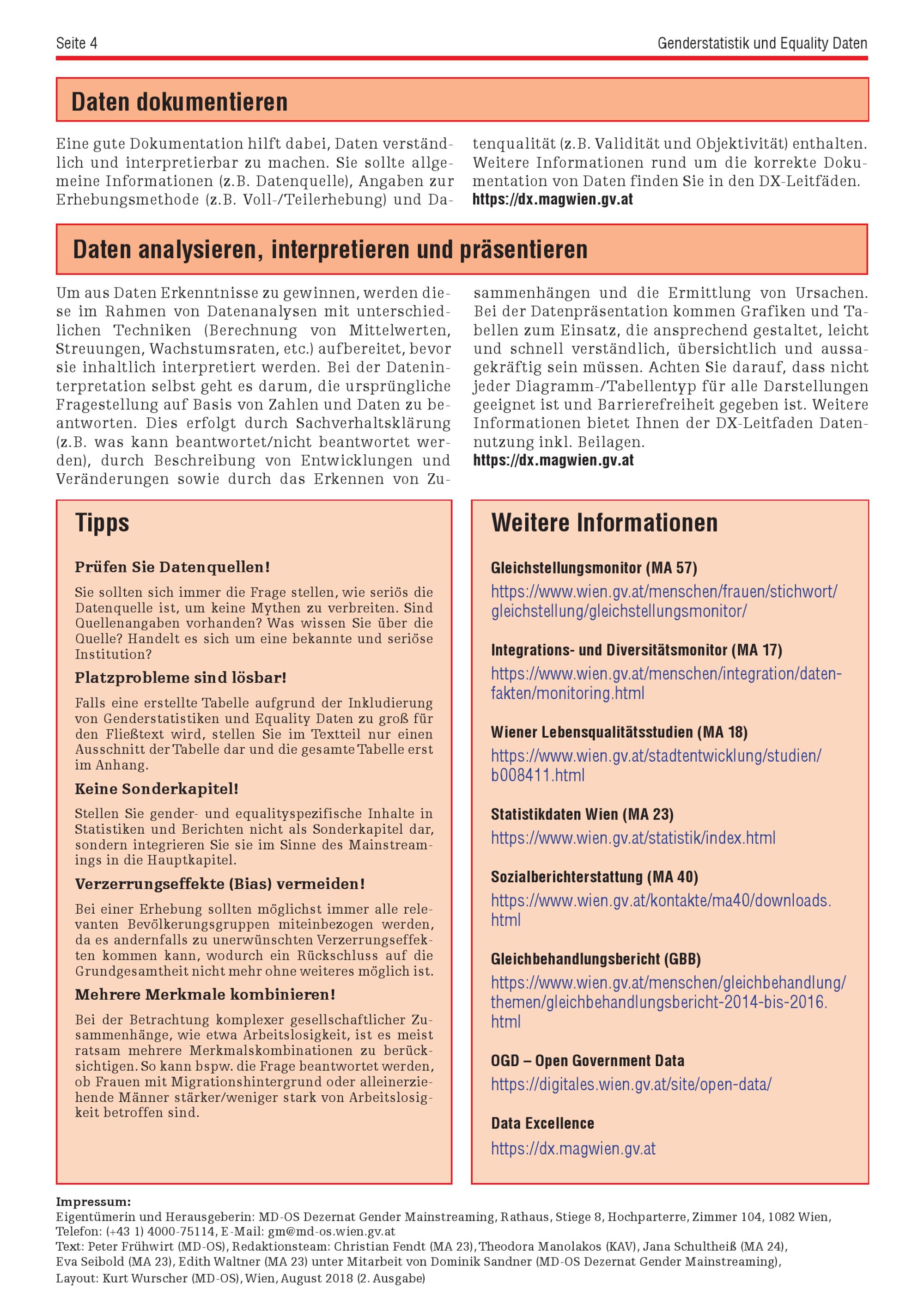 Genderstatistik und Equality Daten / Herausgeberin: MD-OS Dezernat Gender Mainstreaming ; Text: Peter Frühwirt