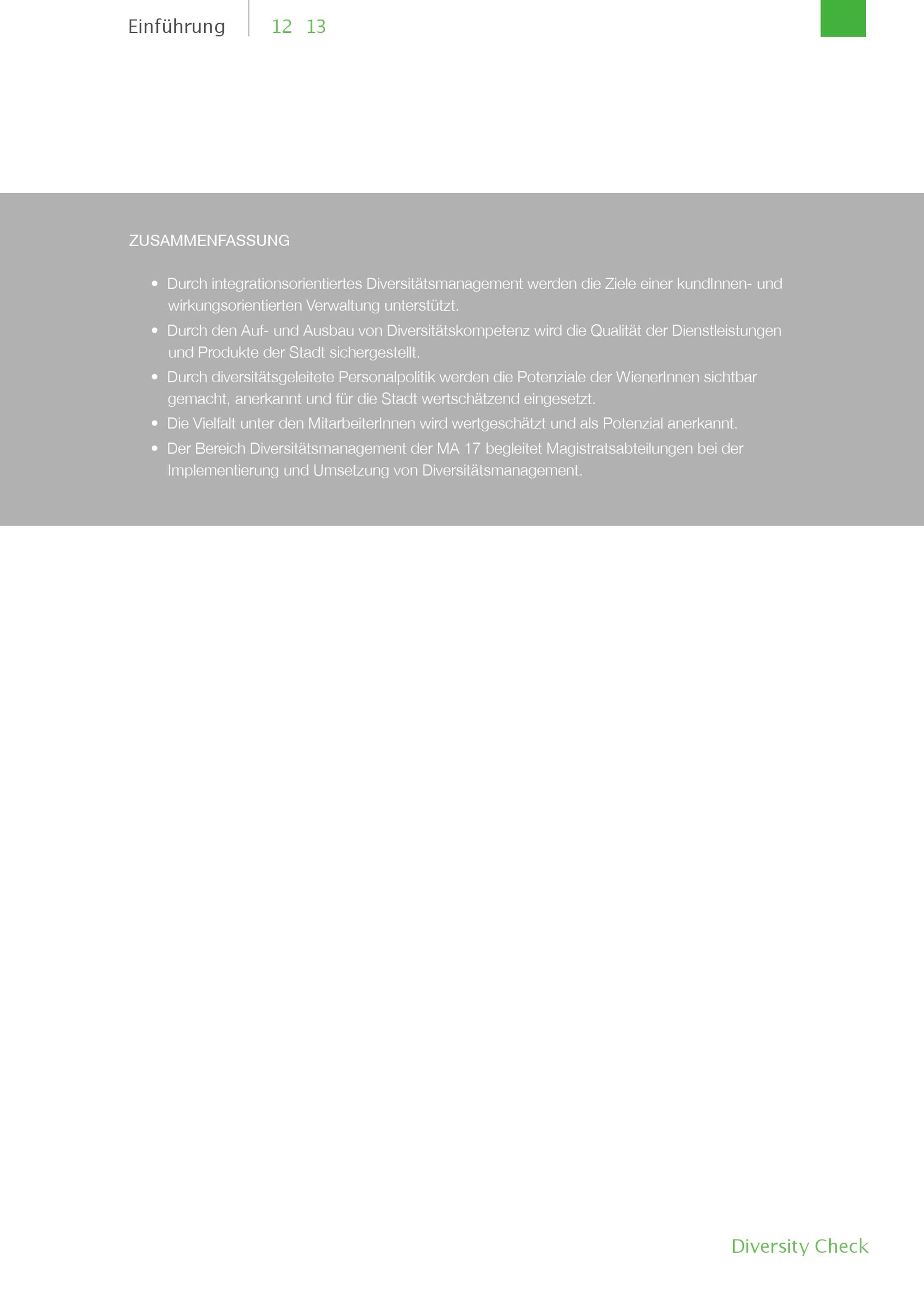 Diversity check : Leitfaden zur Implementierung des integrationsorientierten Diversitätsmanagement in der Wiener Stadtverwaltung : Analyse, Entwicklung, Umsetzung, Evaluation / Magistrat der Stadt WienMA 17 – Integration und Diversität
