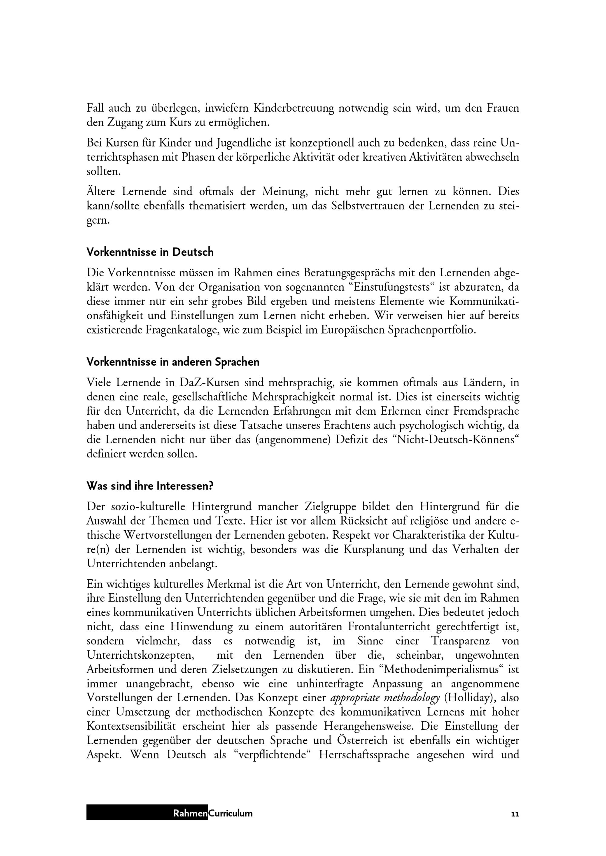 Rahmen Curriculum : Deutsch als Zweitsprache & Alphabetisierung / im Auftrag der MA 17 ; AutorInnen: Thomas Fritz (Institut für Weiterbildung des Verbands Wiener Volksbildung), Renate Faistauer (Universität Wien), Monika Ritter, Angelika Hrubesch (AlfaZentrum der Volkshochschule Ottakring)