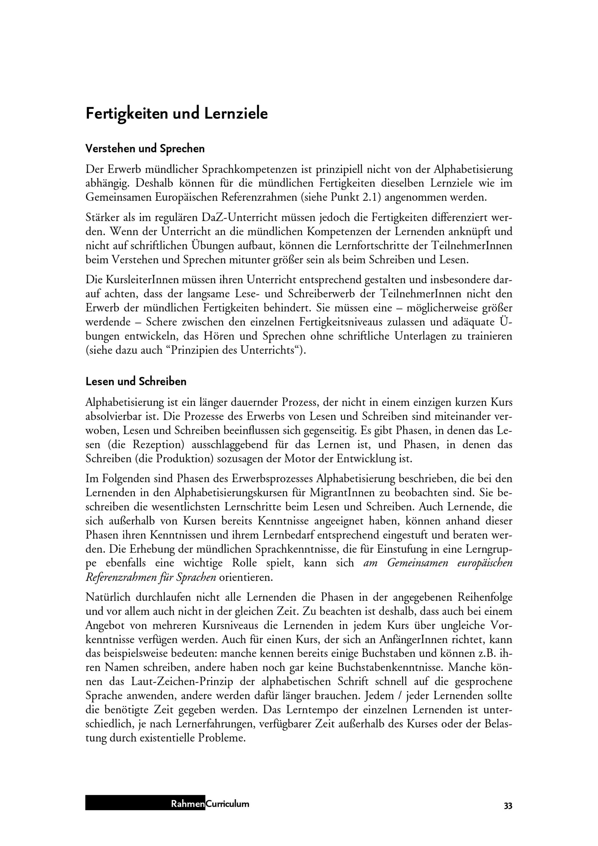 Rahmen Curriculum : Deutsch als Zweitsprache & Alphabetisierung / im Auftrag der MA 17 ; AutorInnen: Thomas Fritz (Institut für Weiterbildung des Verbands Wiener Volksbildung), Renate Faistauer (Universität Wien), Monika Ritter, Angelika Hrubesch (AlfaZentrum der Volkshochschule Ottakring)