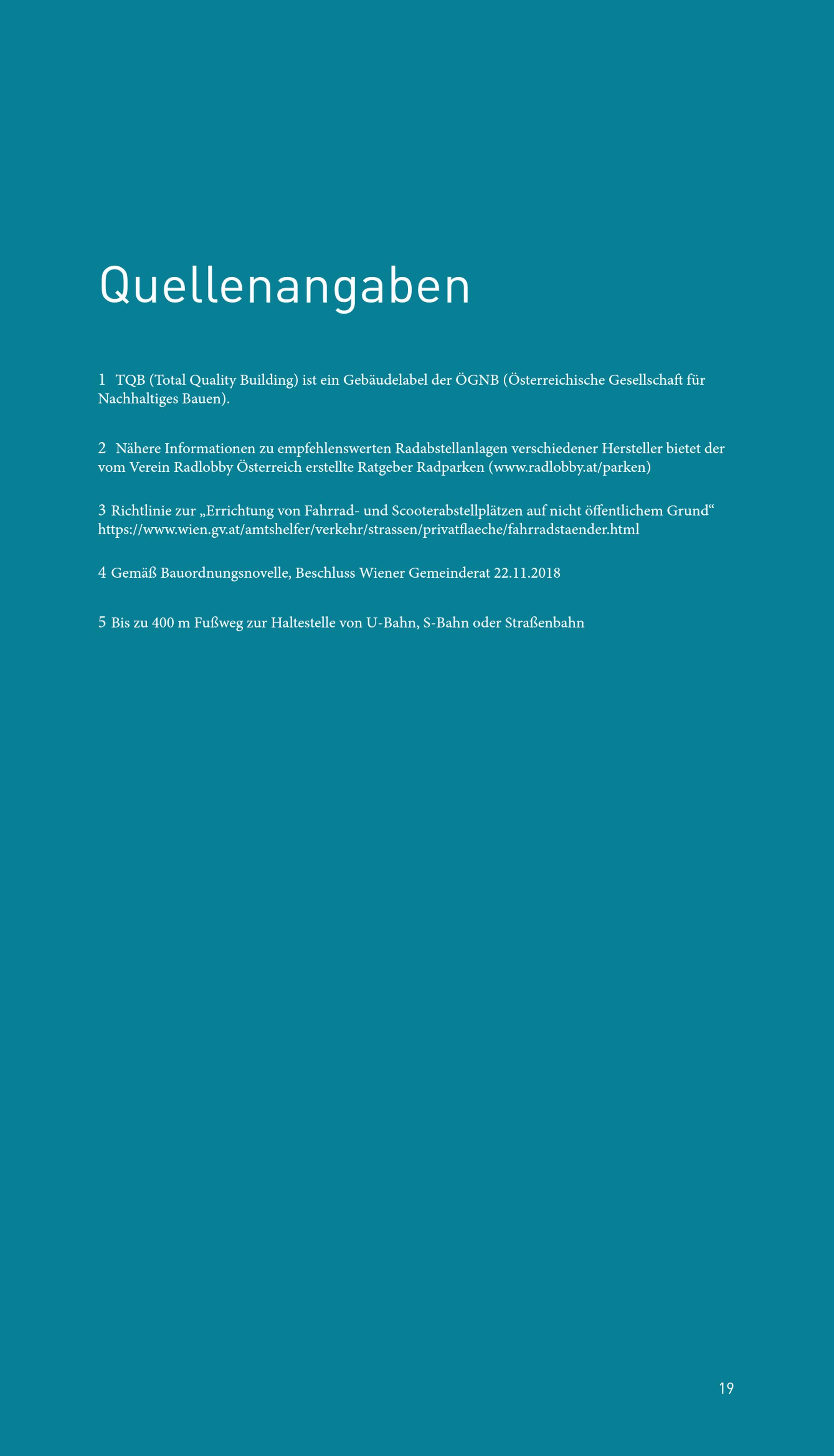 Radabstellanlagen bei Gebäuden : Empfehlungen und Informationen für BauträgerInnen und PlanerInnen / Herausgeber Stadt Wien, Magistratsabteilung 18 - Stadtentwicklung und Stadtplanung ; Projektleitung Thomas Berger und Manuel Pröll (MA 18) ; Inhaltliche Erarbeitung Julia Zientek, Michaela Kargl, Karl Reiter (Forschungsgesellschaft Mobilität - FGM)