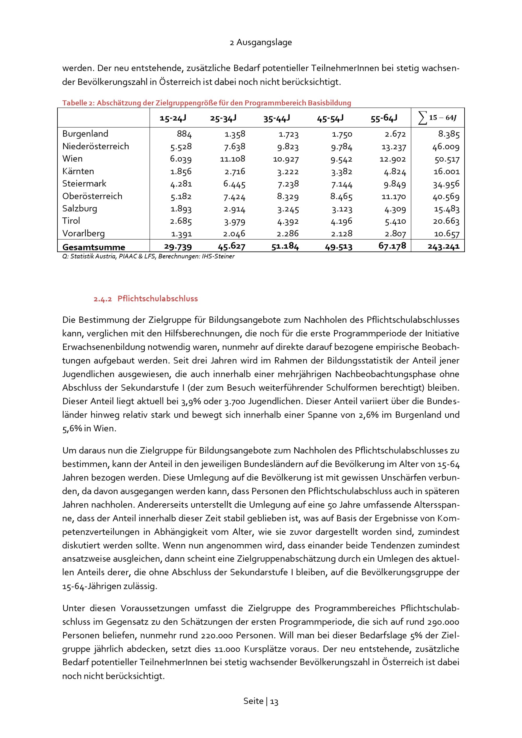 Programmplanungsdokument Initiative Erwachsenenbildung : Länder-Bund-Initiative zur Förderung grundlegender Bildungsabschlüsse für Erwachsene inklusive Basisbildung 2015-2017 / für den Inhalt verantwortlich: Steuerungsgruppe der Initiative Erwachsenenbildung ; eine Kooperation des Bundesministeriums für Bildung und Frauen und der Länder