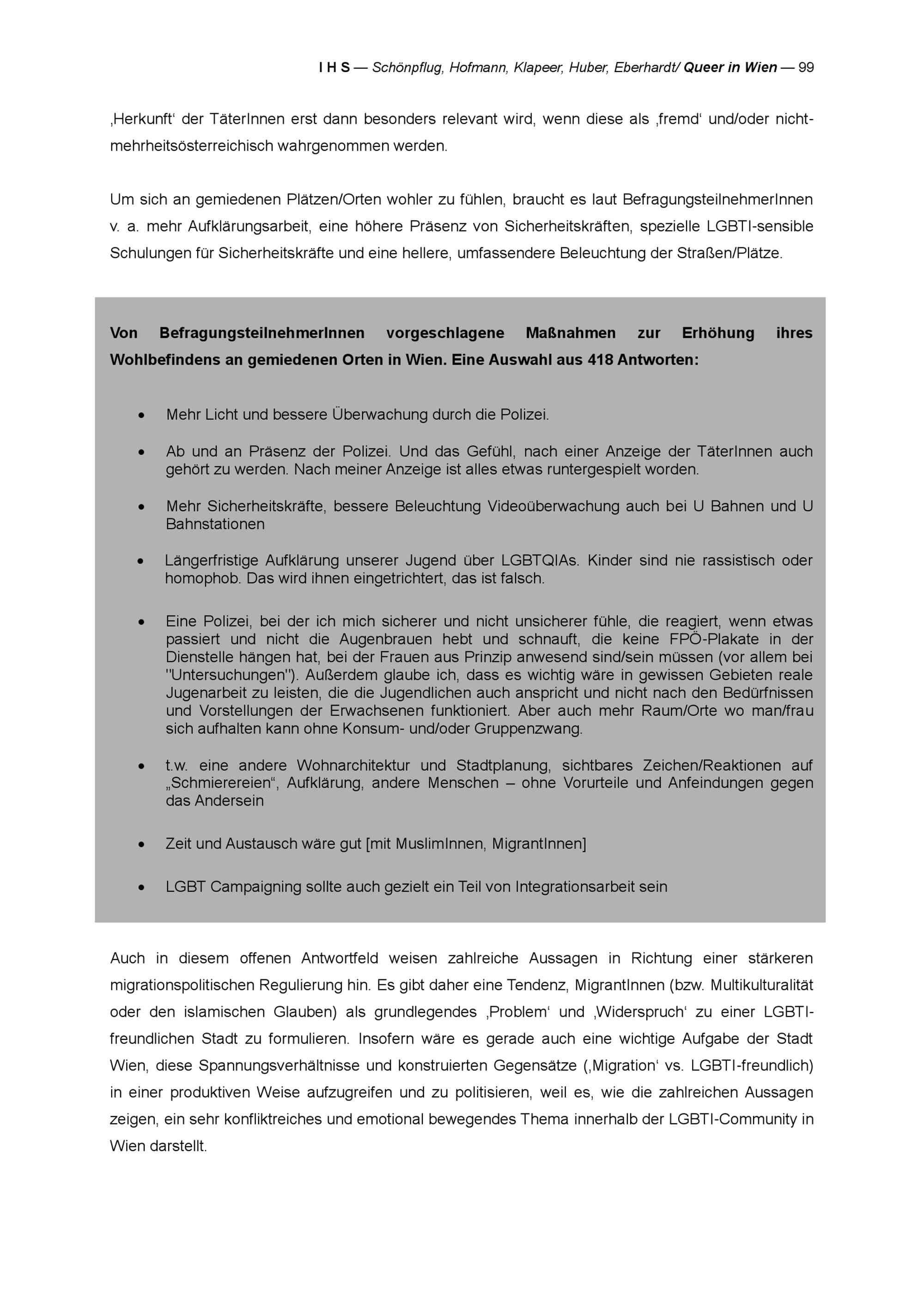 " Queer in Wien" : Stadt Wien Studie zur Lebenssituation von Lesben, Schwulen, Bisexuellen, Transgender und Intersex Personen (LGBTIs) : Endbericht : Projektbericht = research report / Karin Schönpflug, Roswitha Hofmann, Christine M. Klapeer, Clemens Huber, Viktoria Eberhardt ; Studie im Auftrag der Wiener Antidiskriminierungsstelle für gleichgeschlechtliche und transgender Lebensweisen