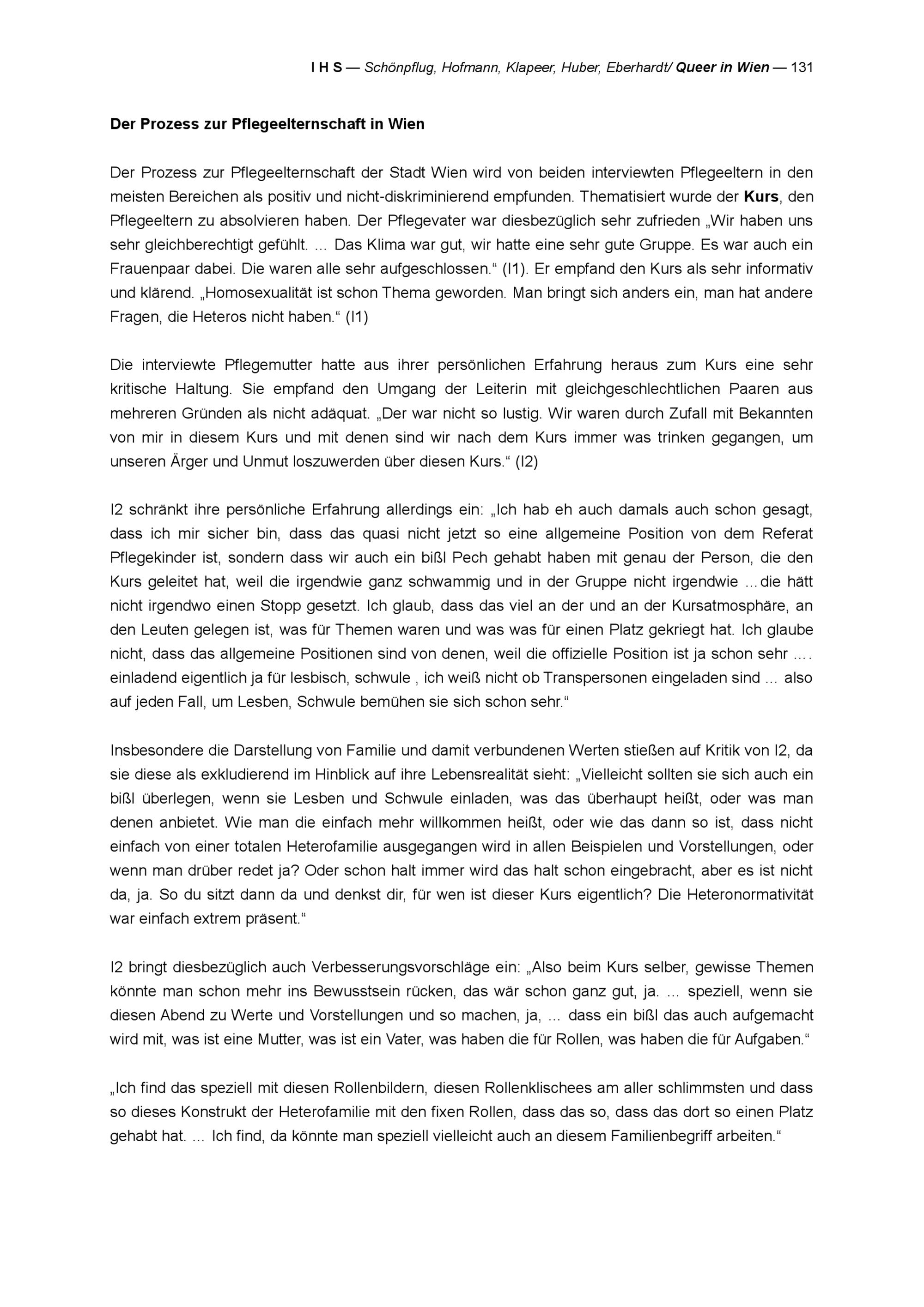 " Queer in Wien" : Stadt Wien Studie zur Lebenssituation von Lesben, Schwulen, Bisexuellen, Transgender und Intersex Personen (LGBTIs) : Endbericht : Projektbericht = research report / Karin Schönpflug, Roswitha Hofmann, Christine M. Klapeer, Clemens Huber, Viktoria Eberhardt ; Studie im Auftrag der Wiener Antidiskriminierungsstelle für gleichgeschlechtliche und transgender Lebensweisen