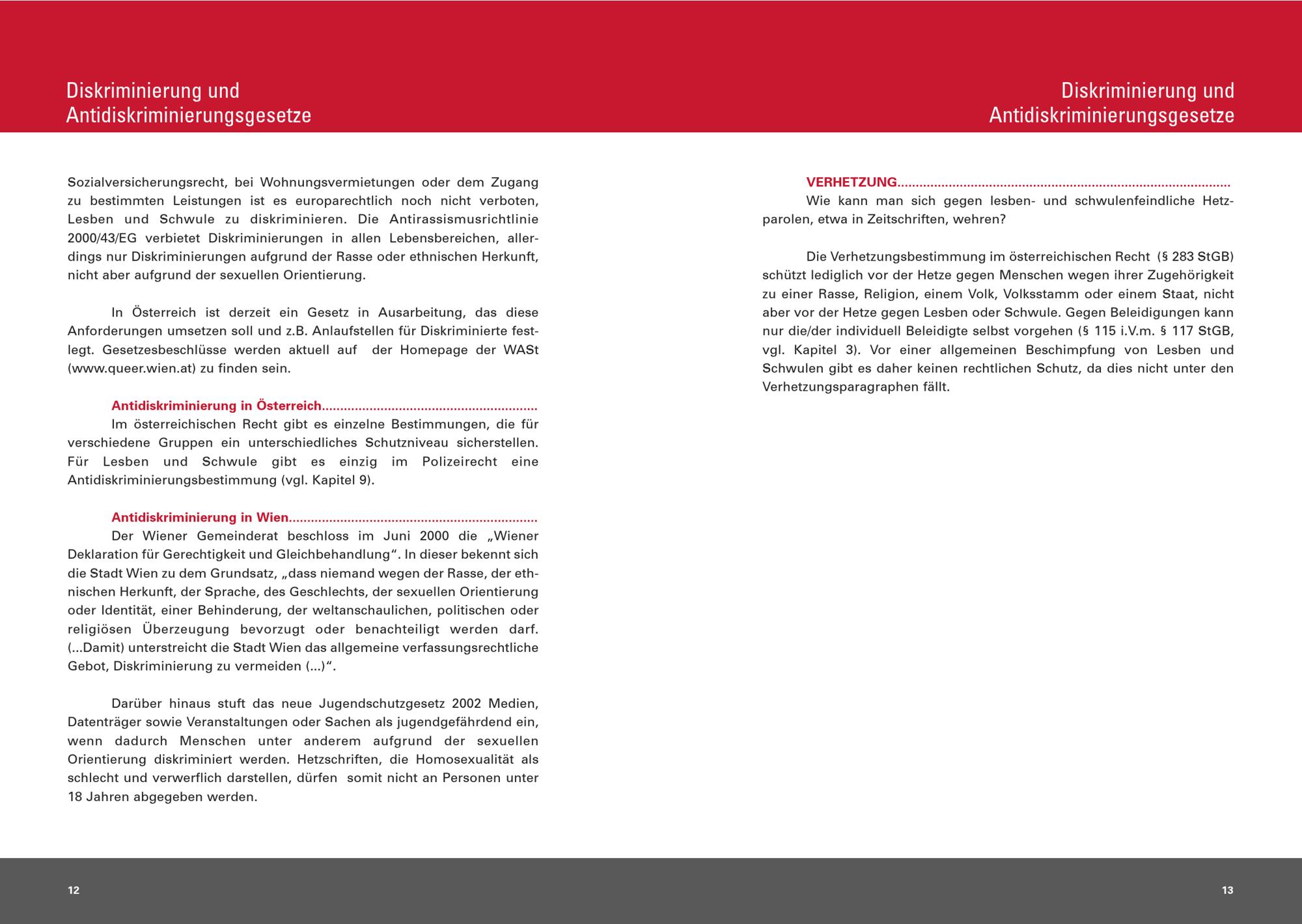 Dein Recht im Alltag : ein/e RatgeberIn für Lesben und Schwule zum Umgang mit Diskriminierung, Mobbing und Ungleichbehandlung / Konzept und Text: Wolfgang Wilhelm, Angela Schwarz, Stefan Dobias ; Wiener Antidiskriminierungsstelle für gleichgeschlechtliche Lebensweisen