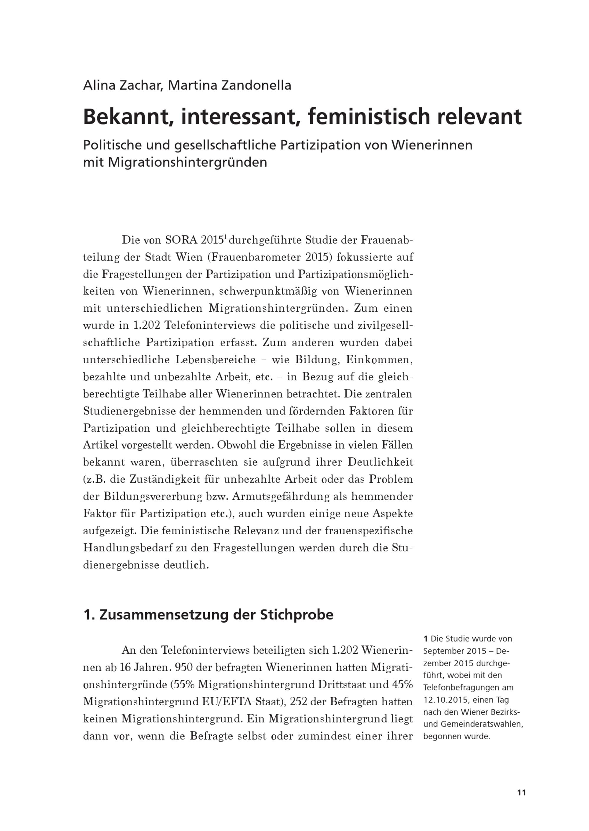 Partizipation: Herausforderung und Potenzial : politische und gesellschaftliche Teilhabe von Wienerinnen mit Migrationshintergründen / Redaktion: Alina Zachar, Claudia Throm