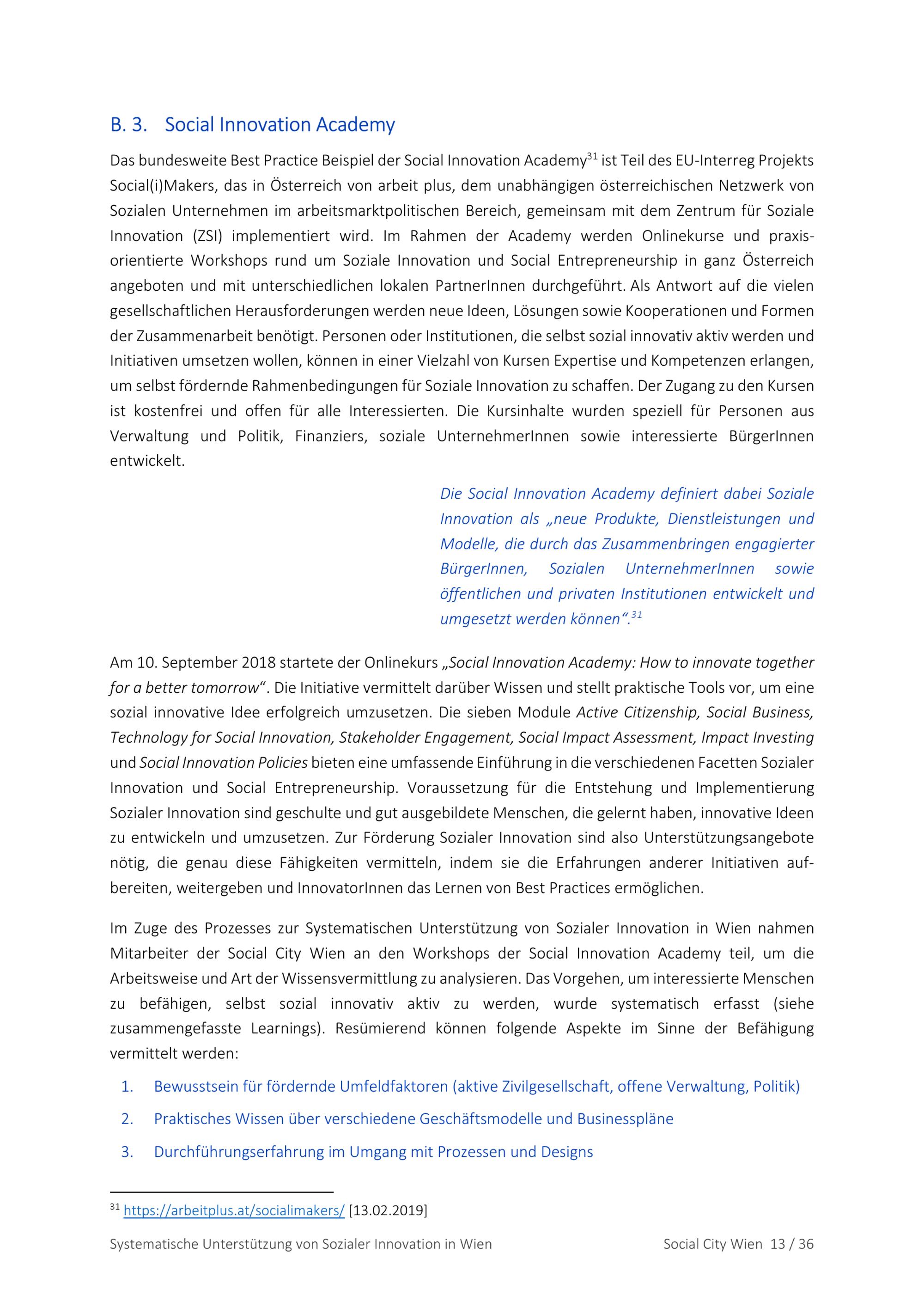 Systematische Unterstützung von sozialer Innovation in Wien : Endbericht / beauftragt im Rahmen der Strategie Innovatives Wien 2020 durch die Magistratsabteilung 23 - Wirtschaft, Arbeit und Statistik der Stadt Wien ; durchgeführt von der Social City Wien ; Emil Diaconu, Geschäftsführer Social City Wien ; Johannes Gorbach, organisatorische Umsetzung ; Andreas Bohonnek, wissenschaftliche Begleitung