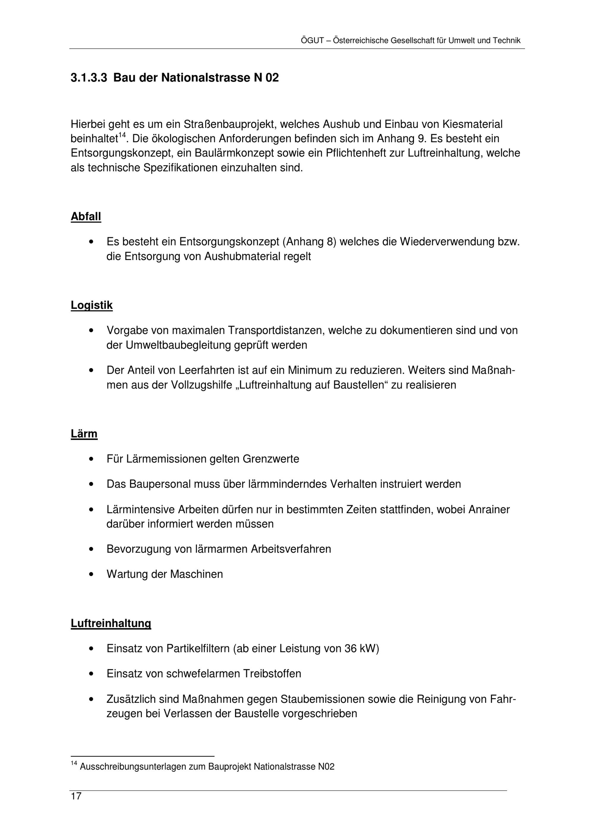 Internationale Recherche zum ökologischen Baustellenmanagement - Bericht / Herausgeber und Auftraggeber: Wiener Umweltschutzabteilung – MA 22 ; AutorInnen: Erika Ganglberger, Österreichische Gesellschaft für Umwelt und Technik (ÖGUT) Thomas Sturm, Österreichische Gesellschaft für Umwelt und Technik (ÖGUT)