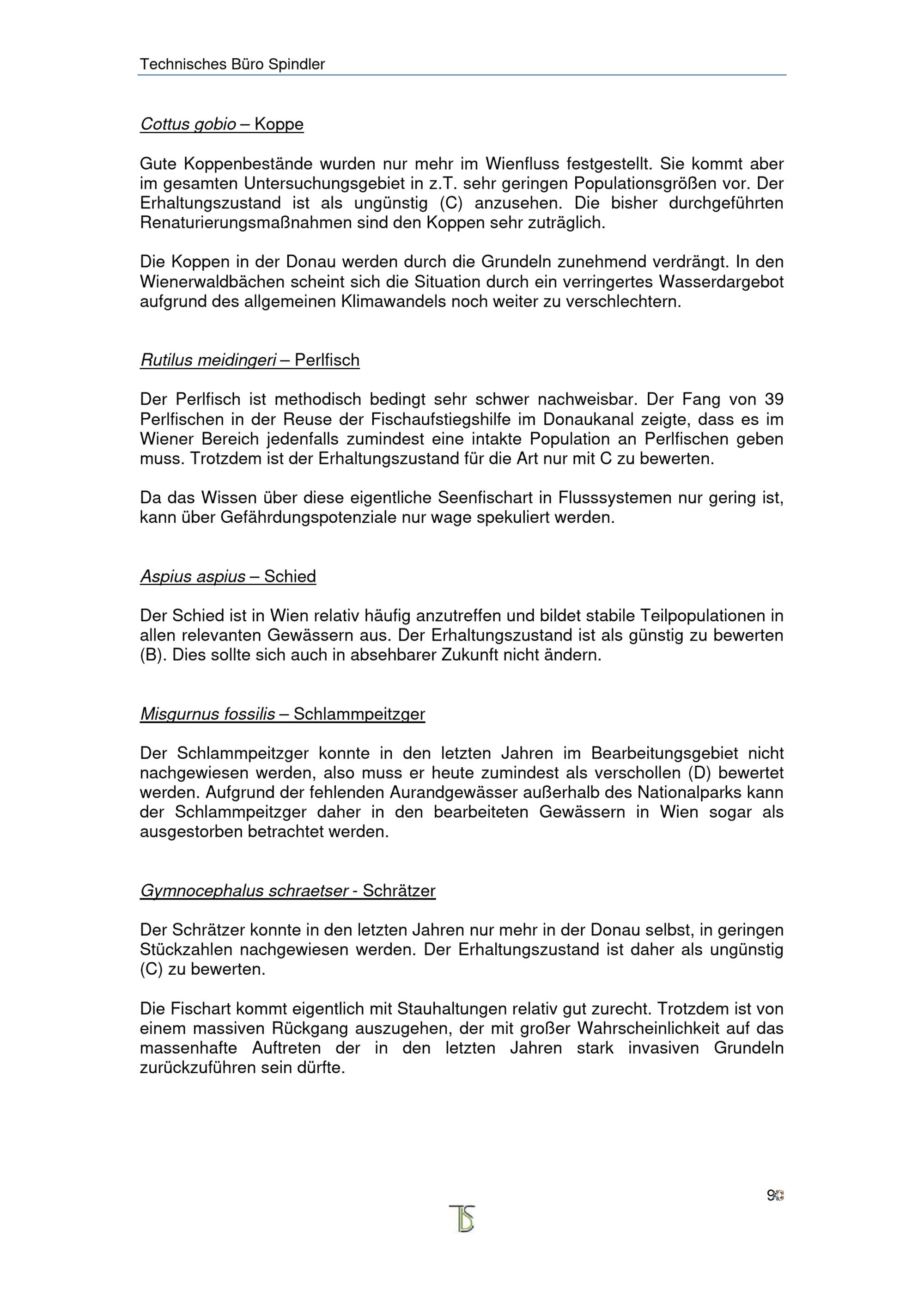 FFH Fischarten in Wien : Erhebung und Einschätzung des Erhaltungszustands der in Anhang II, IV und V der FFH-Richtlinie genannten und in Wien vorkommenden und geschützten Fischarten, 2018/2019“ / TBS Dr. Thomas Spindler ; Auftraggeber: MA 22