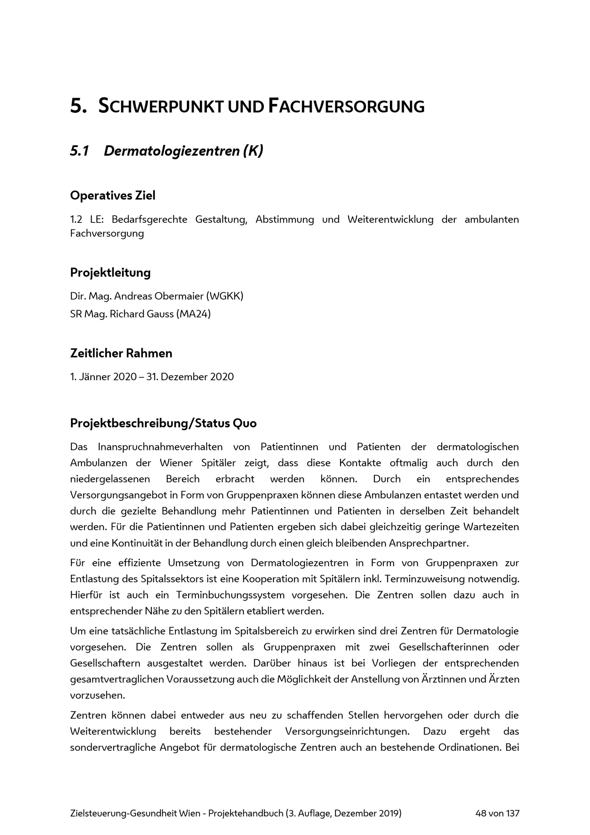 Projektehandbuch - Zielsteuerung-Gesundheit Wien / Wiener Gesundheitsfonds