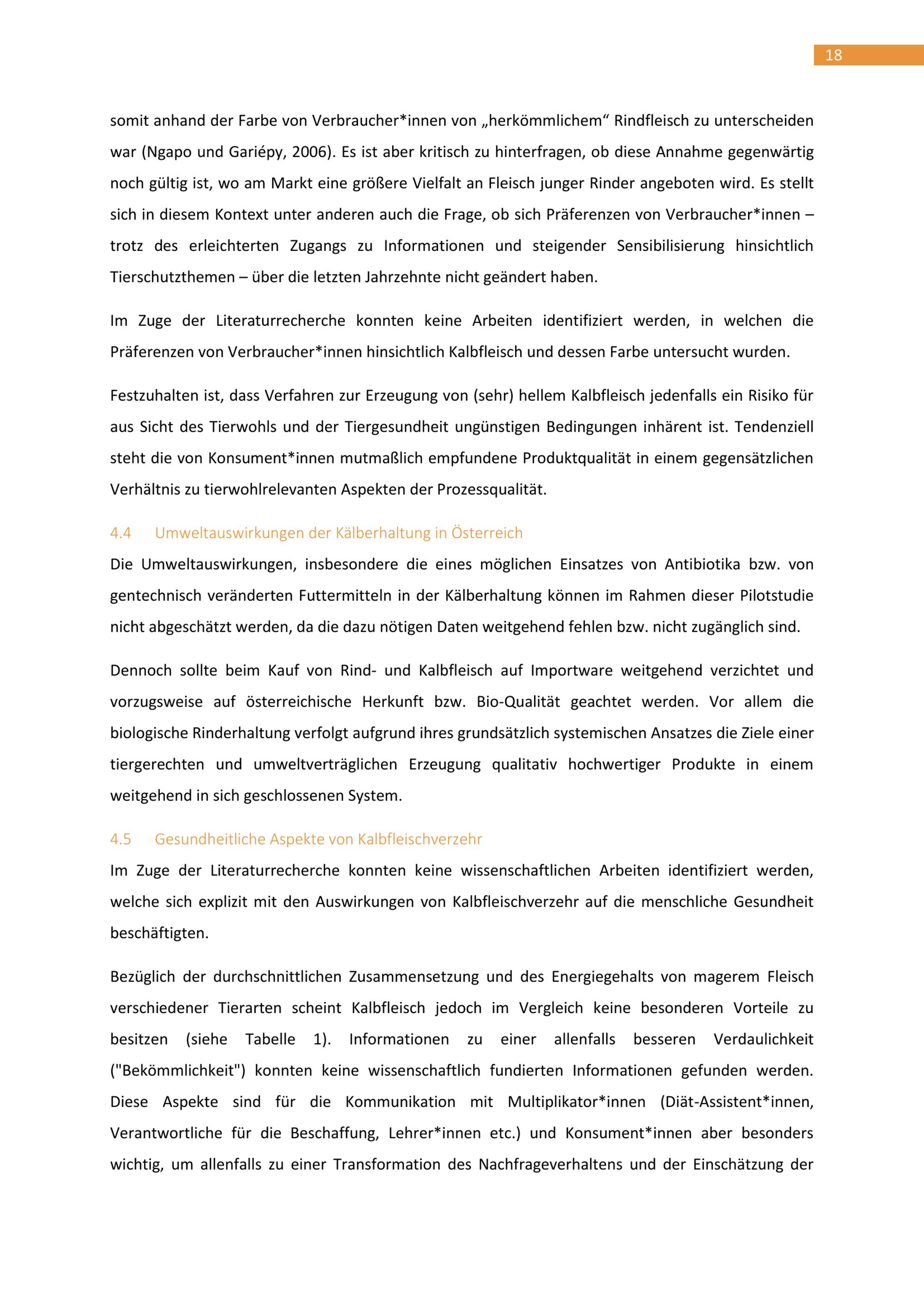 Pilotstudie zu ausgewählten Nachhaltigkeitsaspekten der Kalbfleischproduktion in Österreich unter besonderer Berücksichtigung der Haltungsbedingungen und der Umweltwirkungen : Bericht : Projektlaufzeit: 2 Monate (November – Dezember 2018) / Universität für Bodenkultur Wien ; Daniela Haager, Christine Leeb, Werner Zollitsch ; im Auftrag der Stadt Wien, MA 22 (Dr.in Karin Büchl-Krammerstätter)
