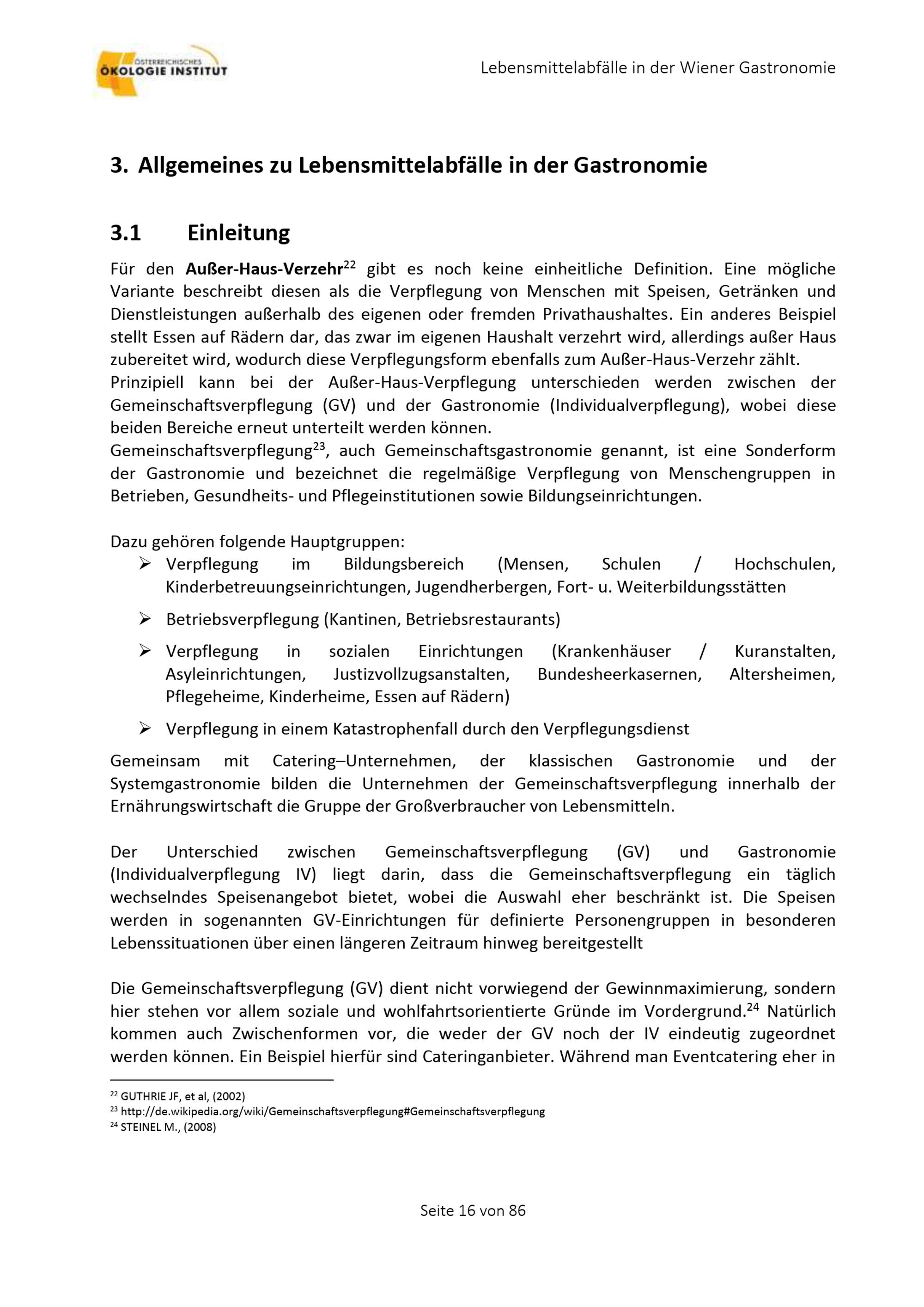 Lebensmittelabfälle in der Wiener Gastronomie / DI Christian Pladerer, DI Philipp Hietler, Österreichisches Ökologie-Institut ; im Auftrag der Wiener Umweltschutzabteilung - MA 22