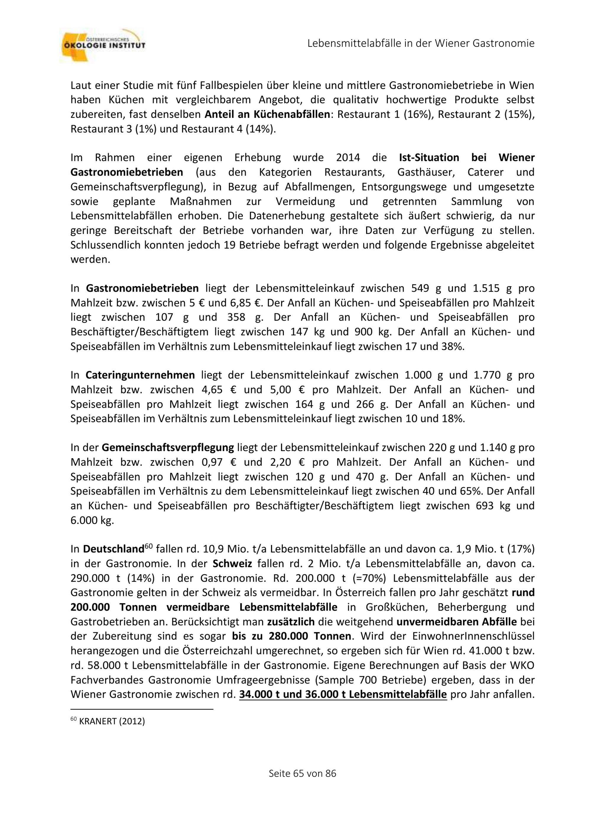 Lebensmittelabfälle in der Wiener Gastronomie / DI Christian Pladerer, DI Philipp Hietler, Österreichisches Ökologie-Institut ; im Auftrag der Wiener Umweltschutzabteilung - MA 22