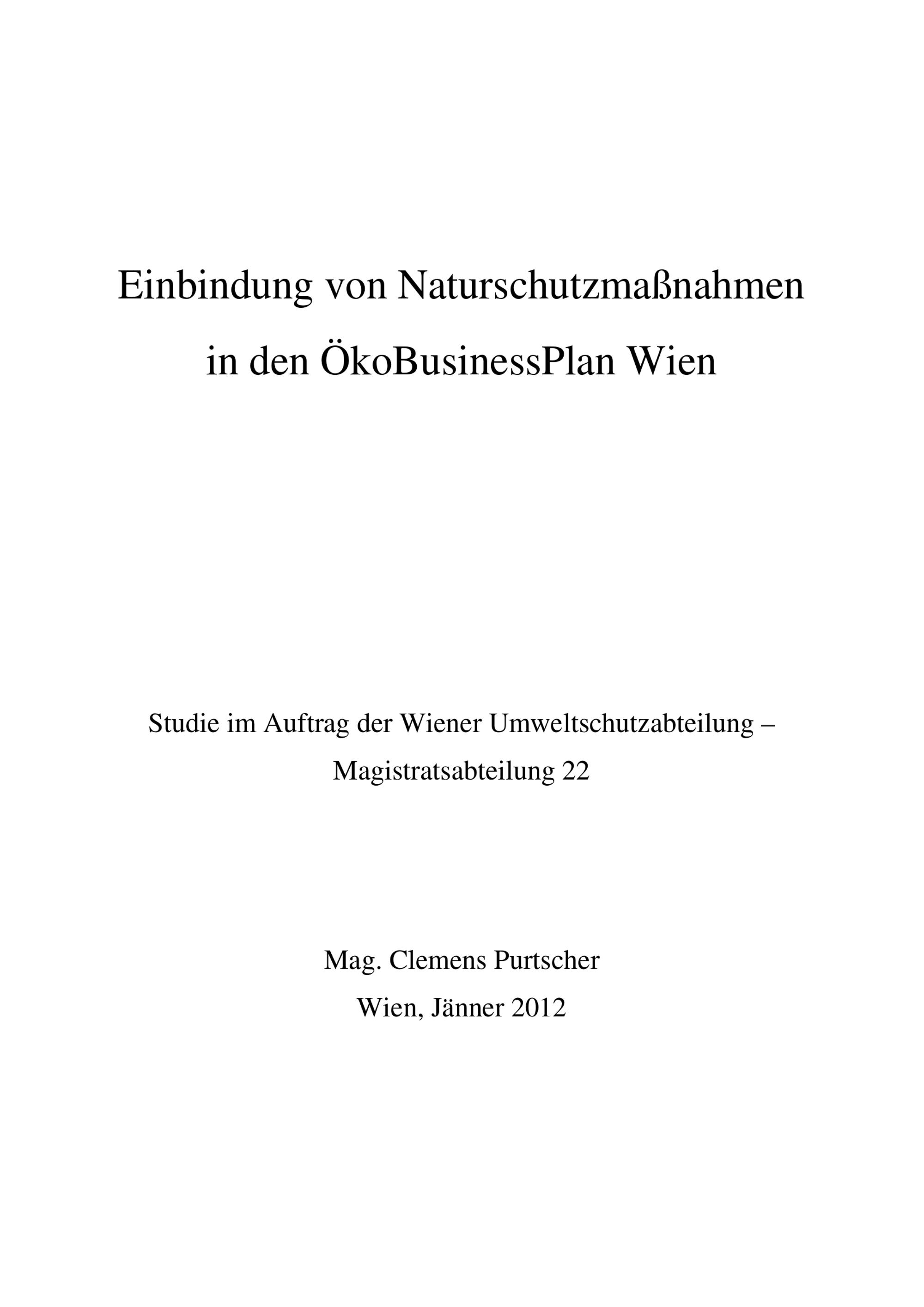 Einbindung von Naturschutzmaßnahmen in den ÖkoBusinessPlan Wien / Studie im Auftrag der Wiener Umweltschutzabteilung - Magistratsabteilung 22 ; Mag. Clemens Purtscher