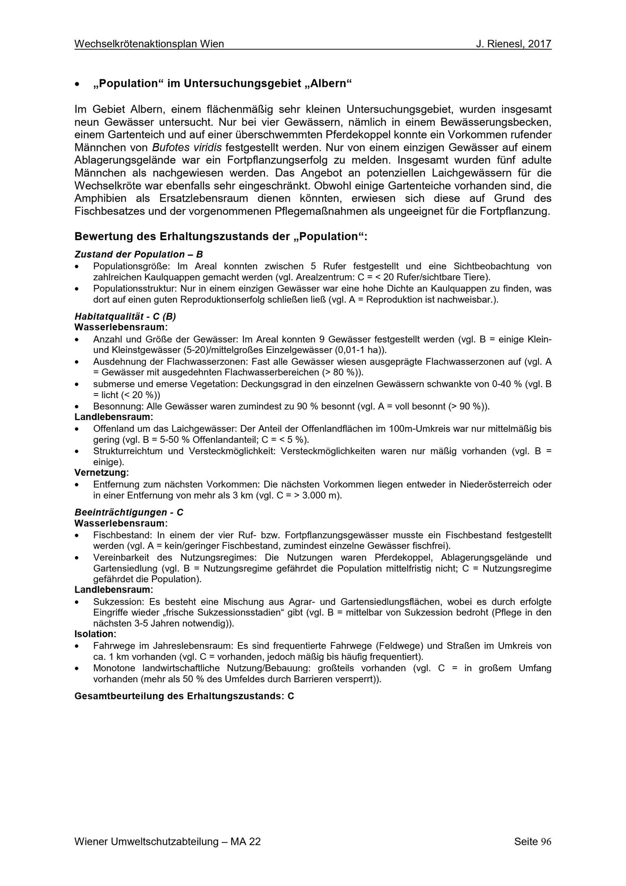 Wechselkrötenaktionsplan : Artenhilfsprogramm für die Wechselkröte in Wien / Medieninhaber und Herausgeber: Magistrat der Stadt Wien, Wiener Umweltschutzabteilung - MA 22 ; Autor: Dr. Jürgen Rienesl