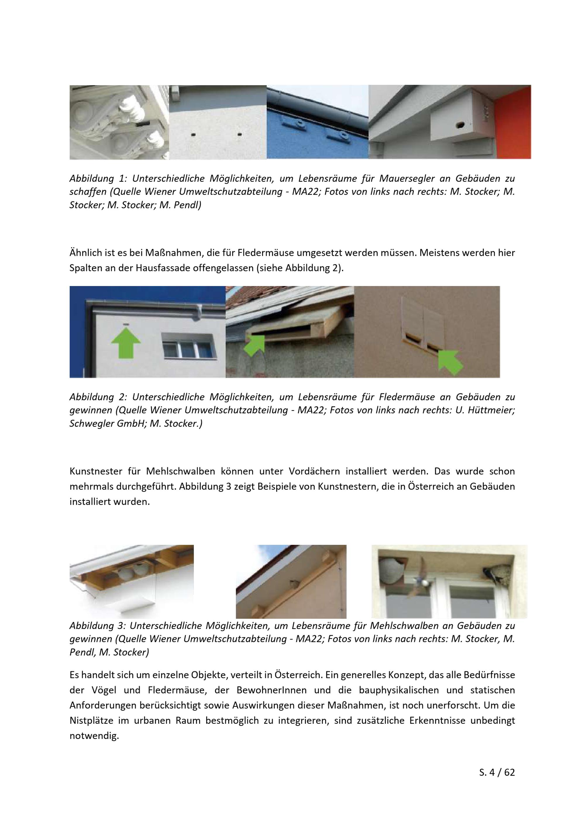 Untersuchung von Nistplätzen an Fassaden und Konzeptentwicklung eines bauphysikalisch optimierten Fassadennistplatzes : Projekt-Bericht / Prof. Dr. Dipl.-Ing. Azra Korjenic, Ing. Anna Vaskova PhD., Dipl.-Ing. Jutta Hollands BSc, Tarja Salonen ; Technische Universität Wien Institut für Hochbau und Technologie Forschungsbereich für Bauphysik und Schallschutz. Teil I.
