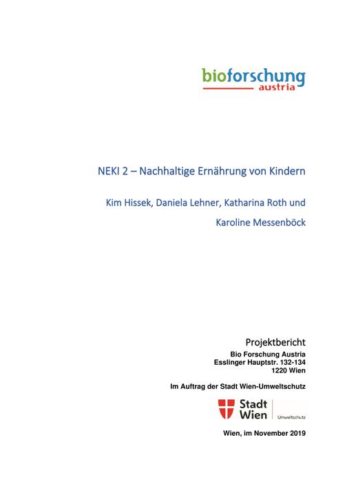 Nachhaltige Ernährung von Kindern : Projektbericht / bioforschung austria ; Kim Hissek, Daniela Lehner, Katharina Roth, Karoline Messenböck ; im Auftrag der Stadt Wien-Umweltschutz. NEKI 2.