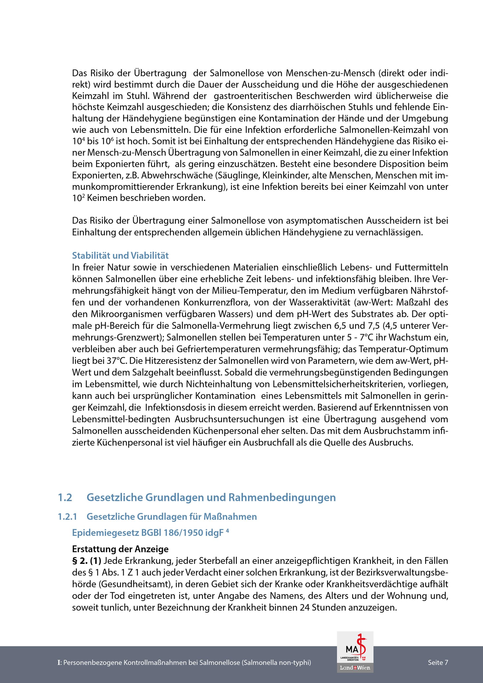 Leitlinie personenbezogene Kontrollmaßnahmen bei lebensmittelbedingten Krankheiten / Herausgeberin Landessanitätsdirektion Wien - Magistratsabteilung 15. Teil 1 / Salmonellose (Salmonella non-typhi), Campylobacteriose
