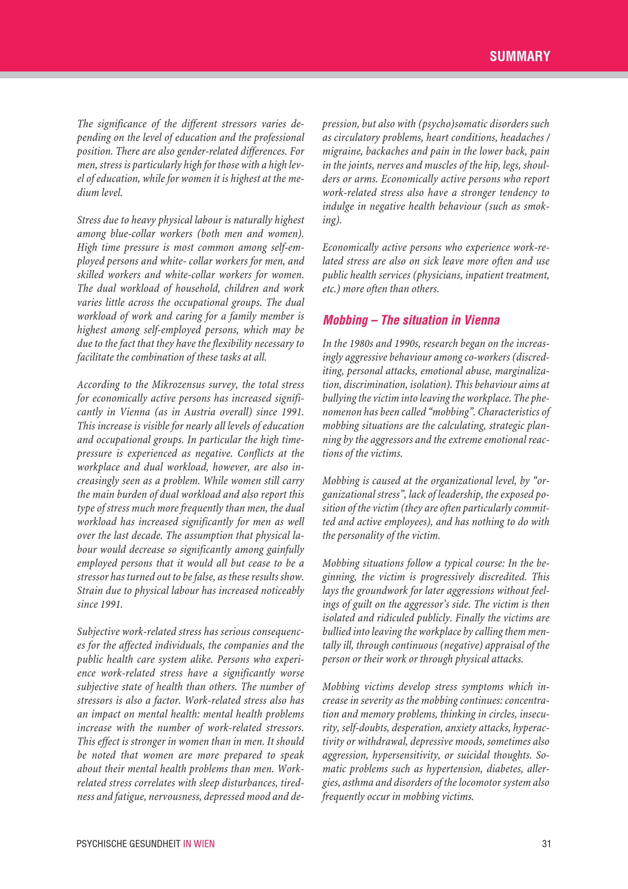 Psychische Gesundheit in Wien : subjektives Empfinden und psychosoziale Faktoren = Mental health in Vienna : self-reported problems and psychosocial factors / Berichterstellung: Elfriede Urbas