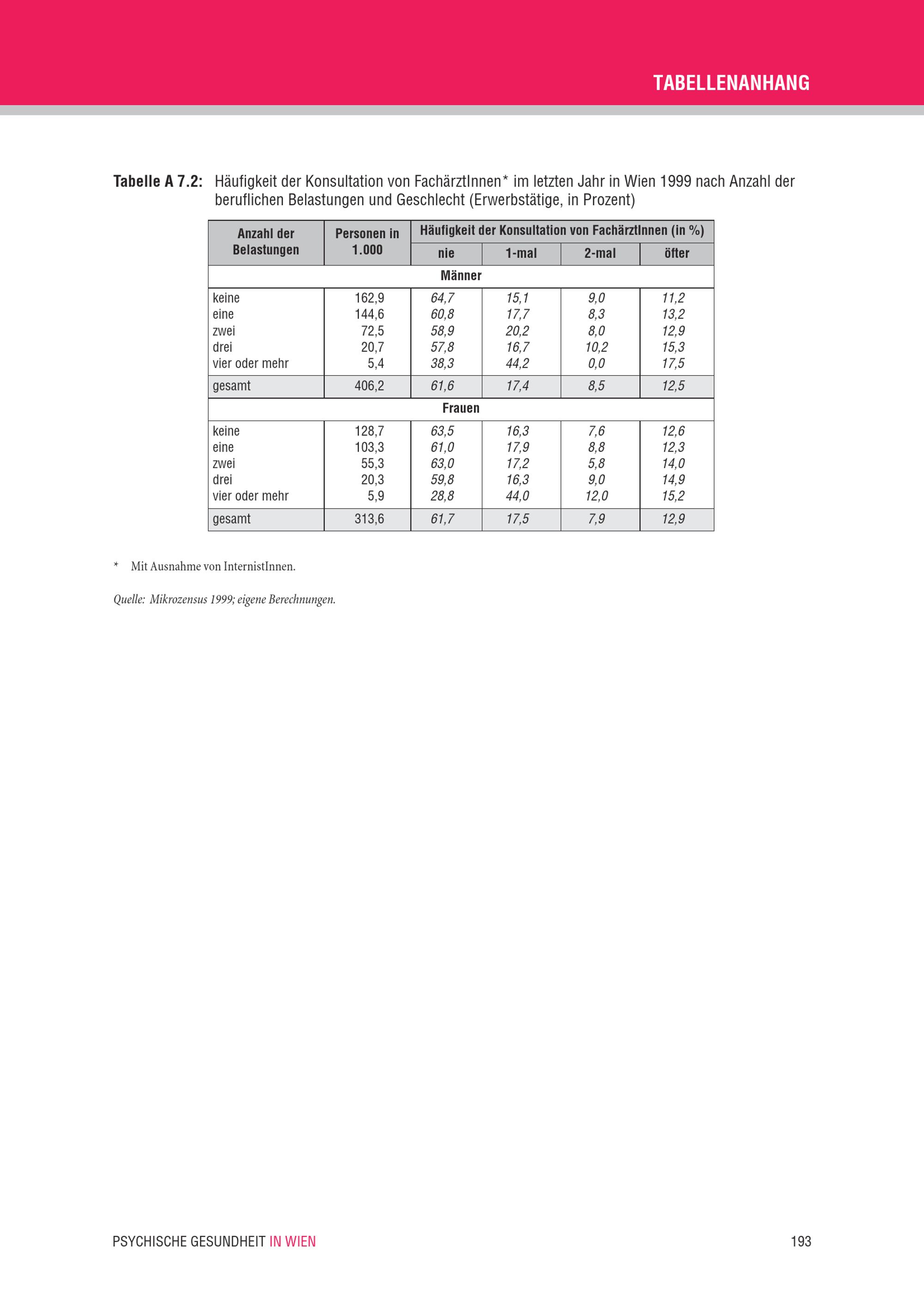 Psychische Gesundheit in Wien : subjektives Empfinden und psychosoziale Faktoren = Mental health in Vienna : self-reported problems and psychosocial factors / Berichterstellung: Elfriede Urbas